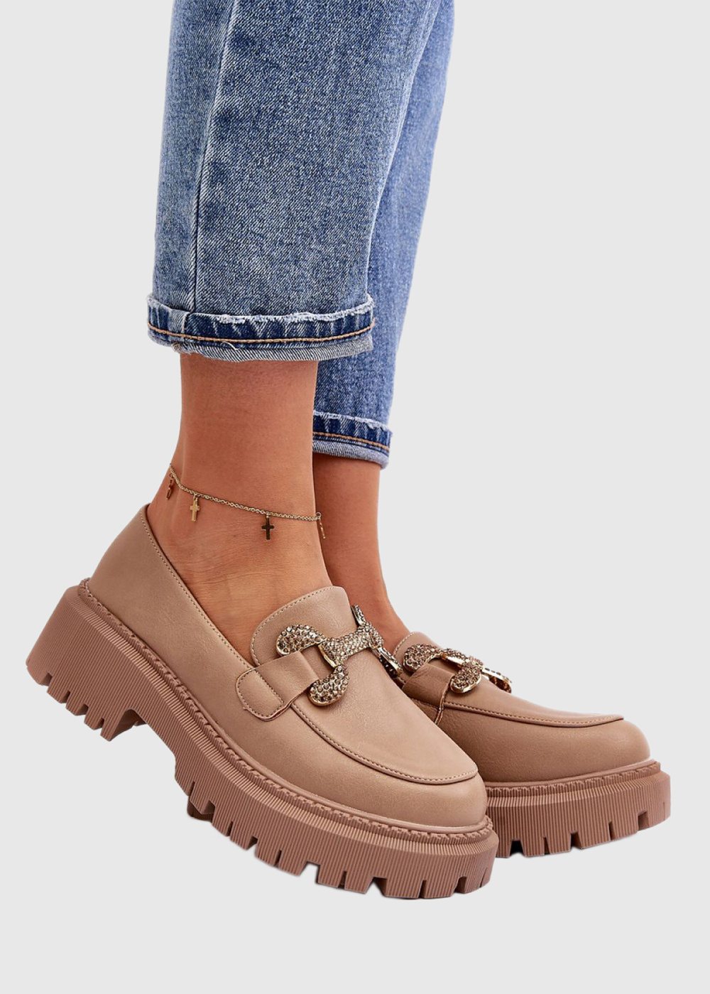 Honorata tumši bēši loaferi ar metāla sprādzi