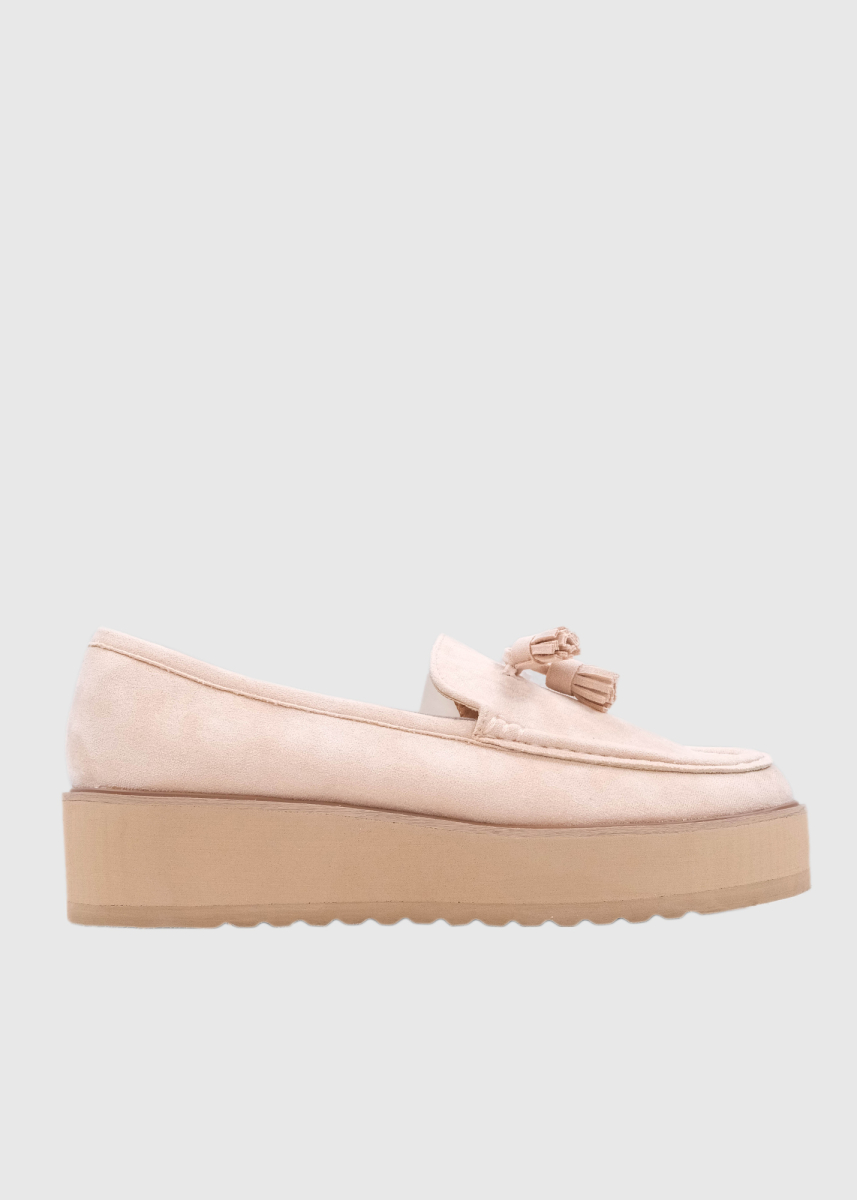 Miguelina gaiši bēši sieviešu mokasīni ar augstu zoli