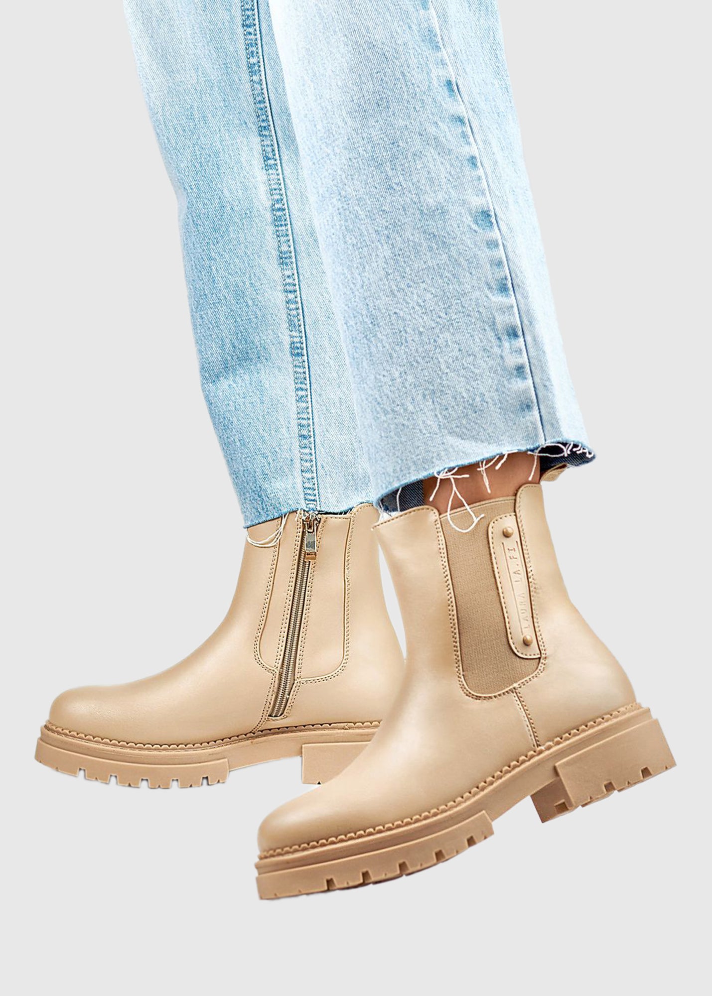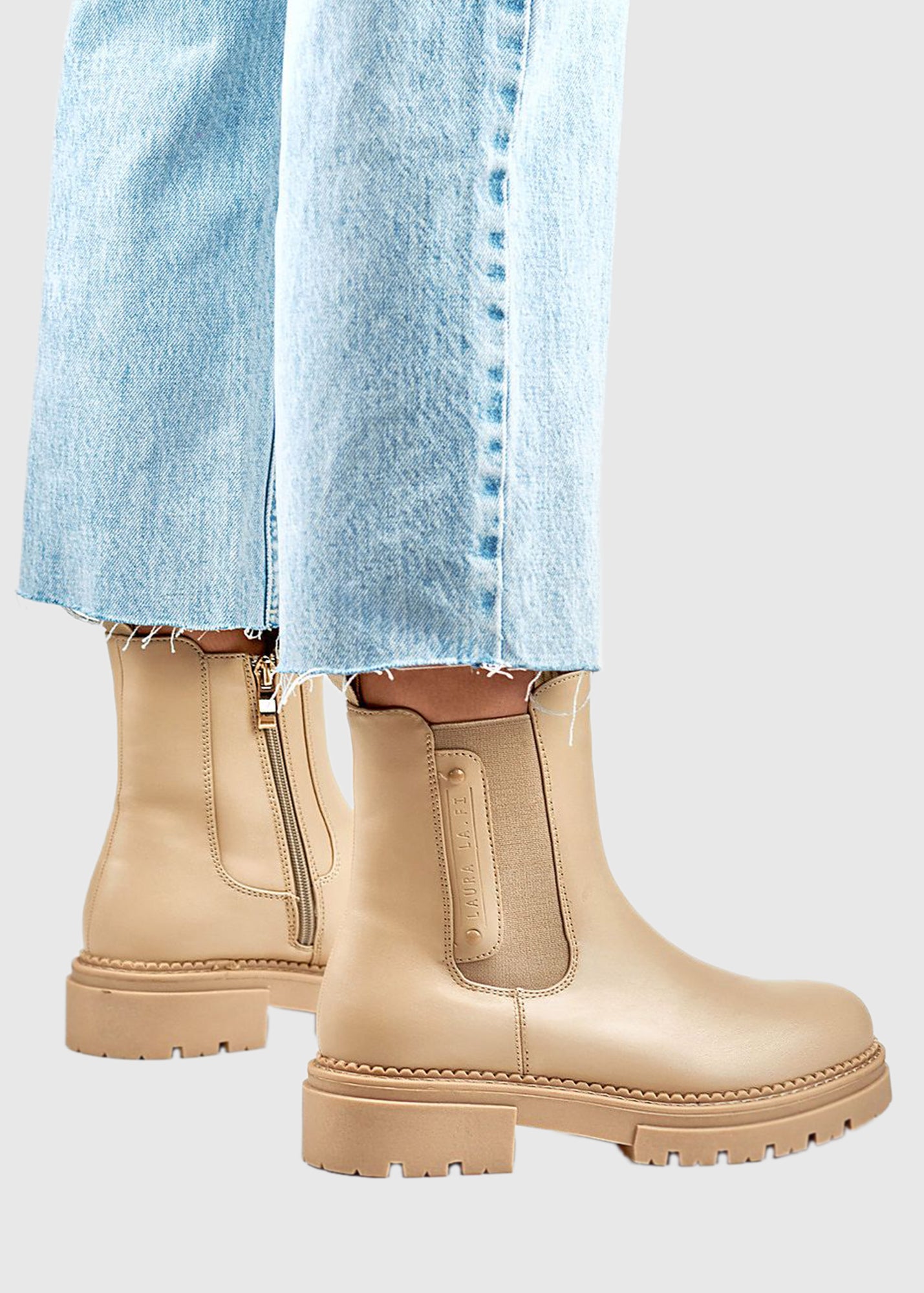 Angiola bēši sieviešu zābaki ar tekstila iešuvumiem