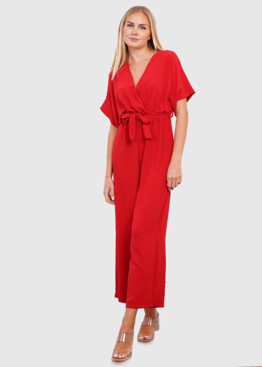 Debora sarkans kombinezons ar V-veida izgriezumu