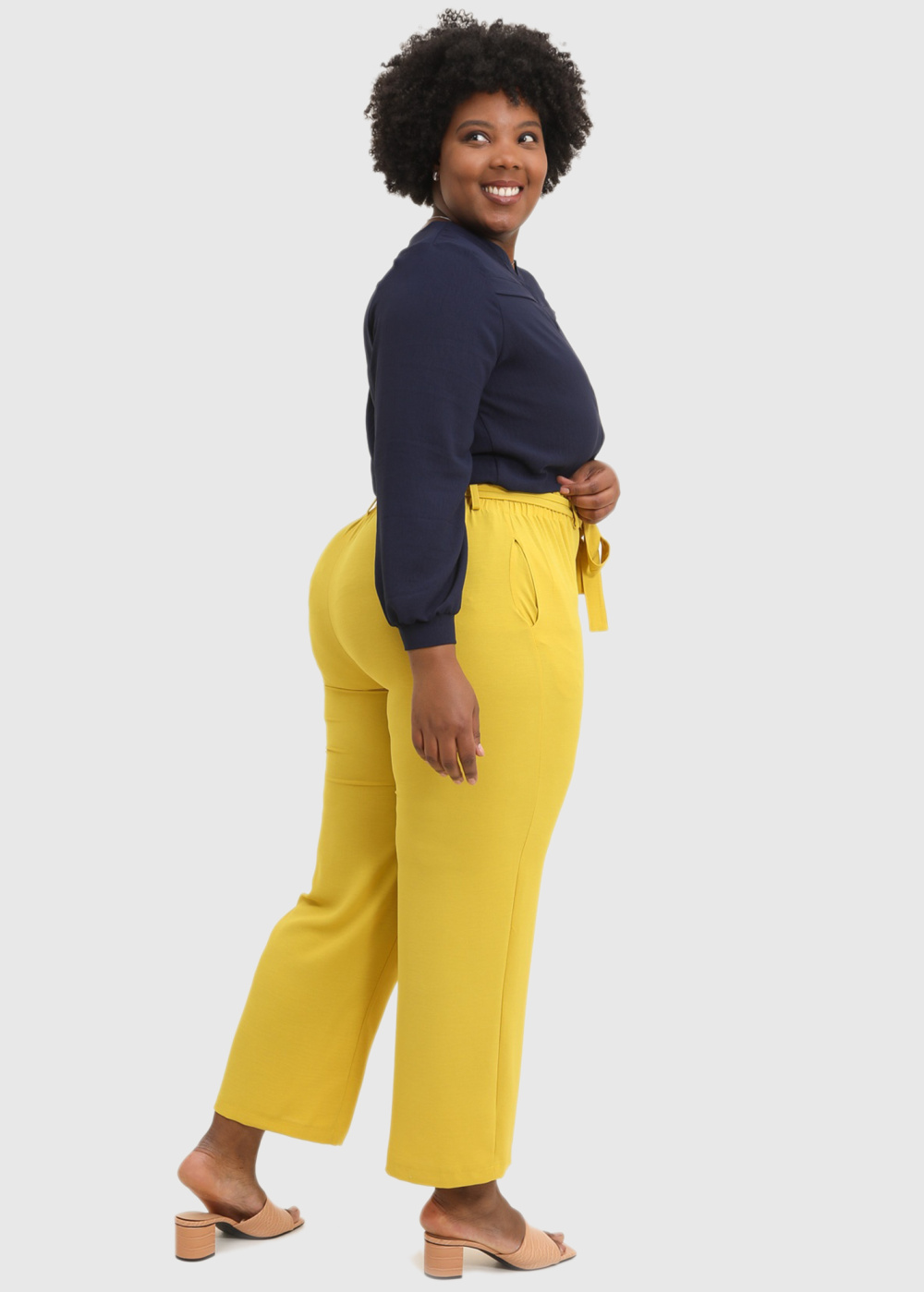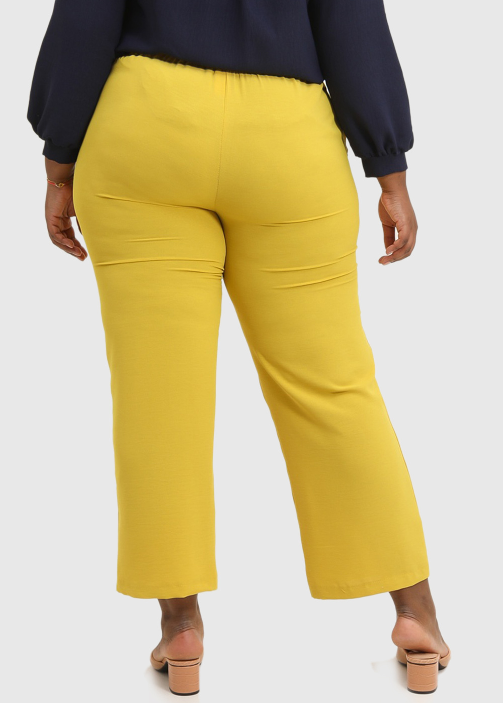 Paula Lielo izmēru dzeltenas sieviešu bikses ar jostu