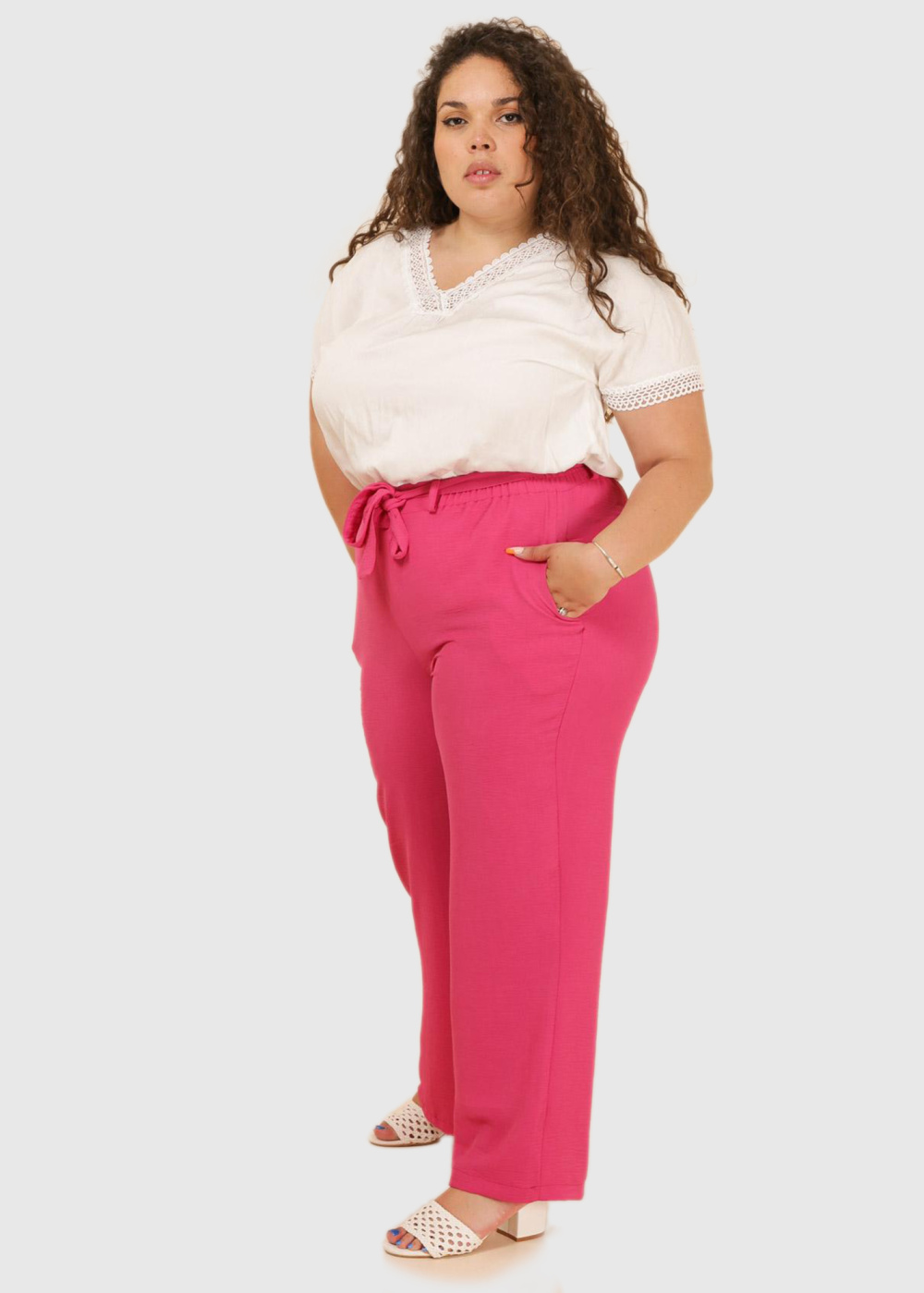 Paula Lielo izmēru rozā sieviešu bikses ar jostu