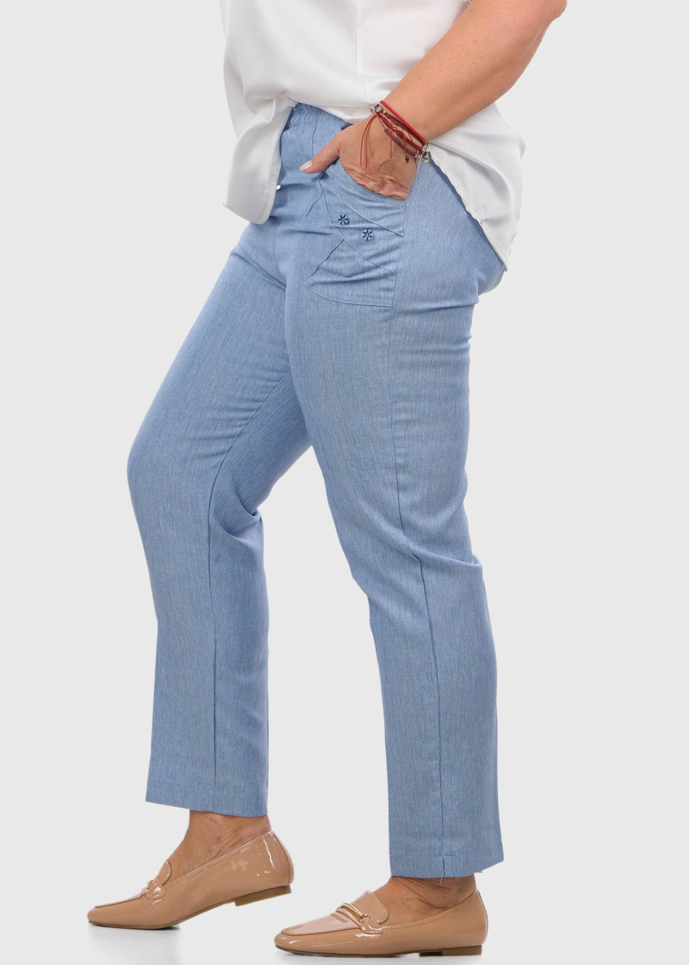 Danbi Lielo izmēru gaiši zilas bikses ar kabatām