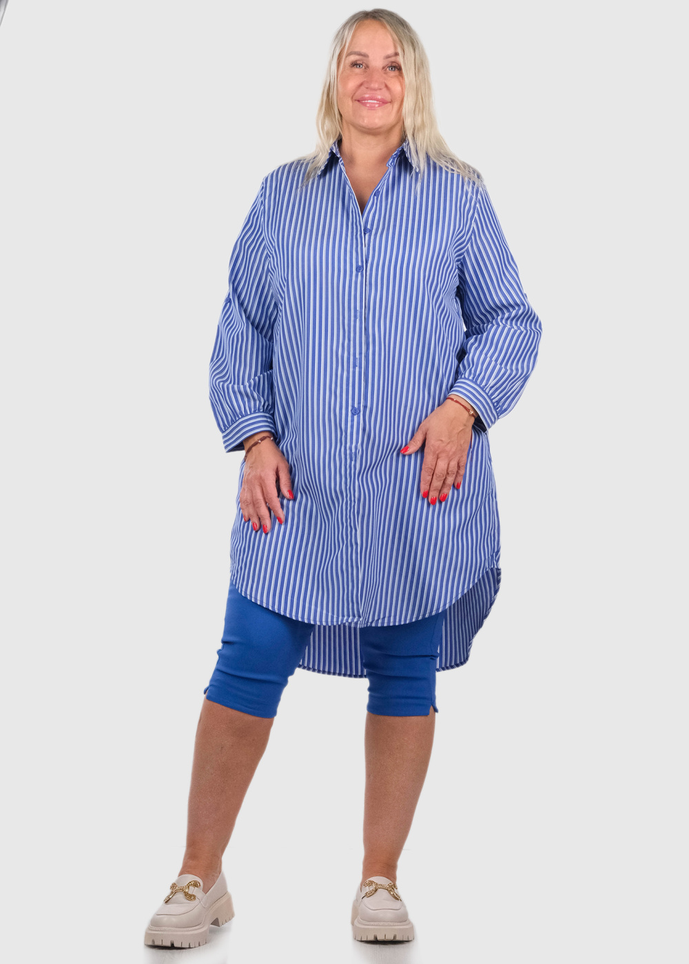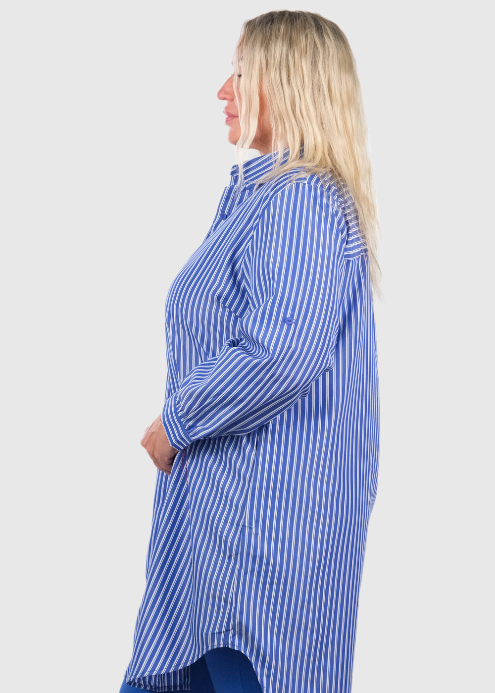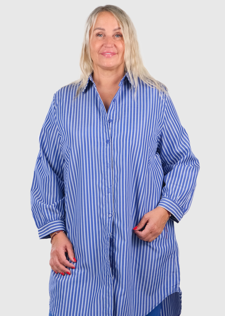 Aniceta Lielo izmēru zila pagarinātā blūze