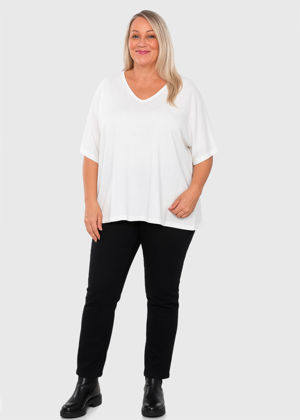 Janine balta brīva piegriezuma blūze