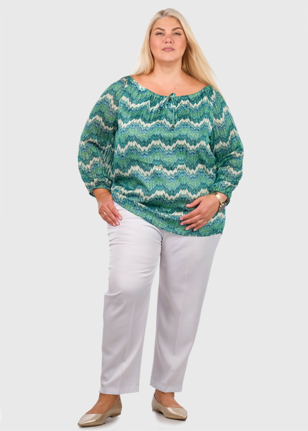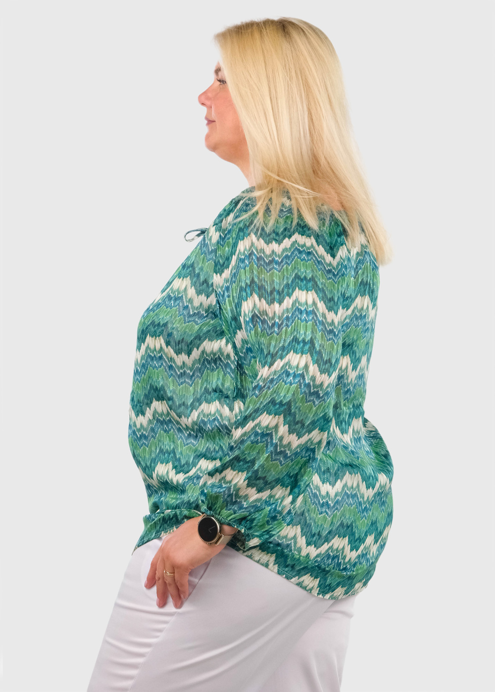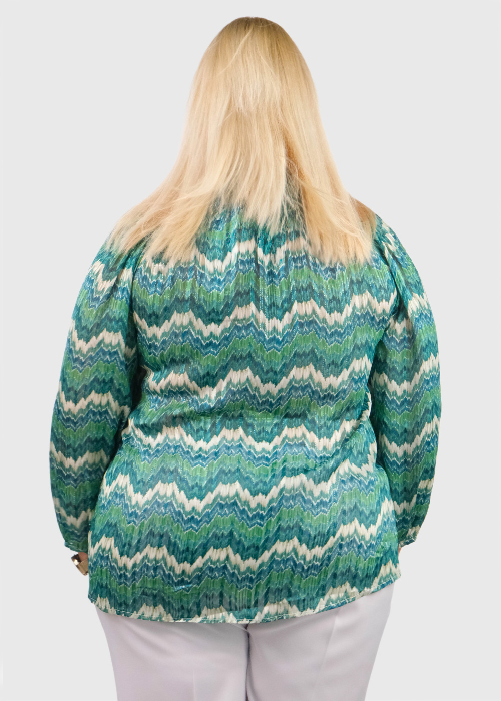 Kibriya Lielo izmēru zaļa blūze ar rakstu