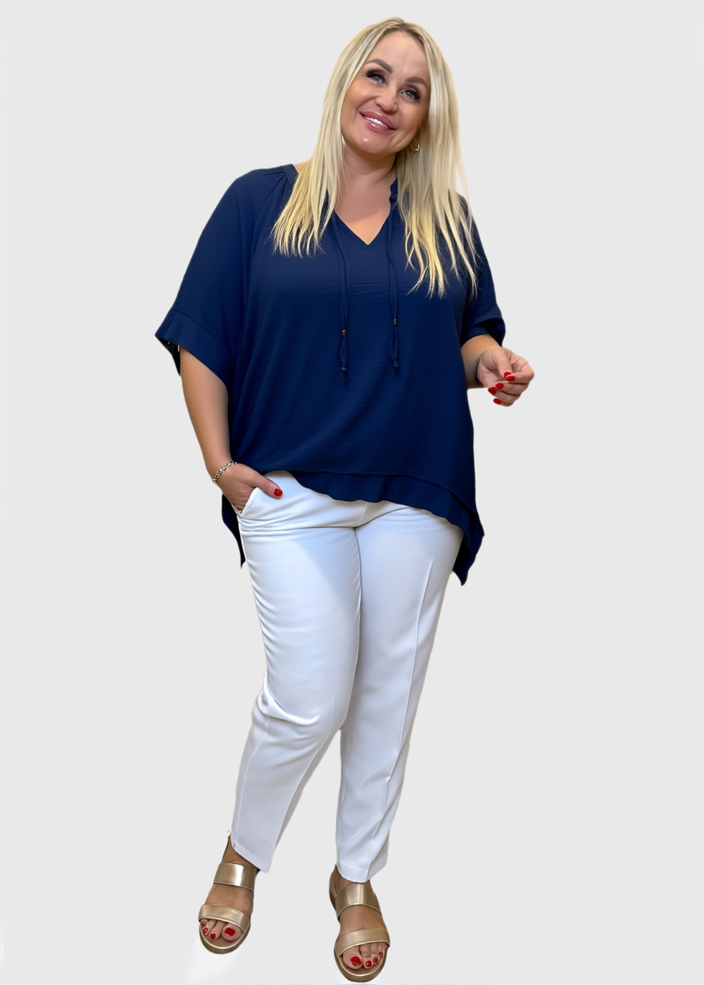 Ksenia Lielo izmēru tumši zila blūze ar asimetrisku malu