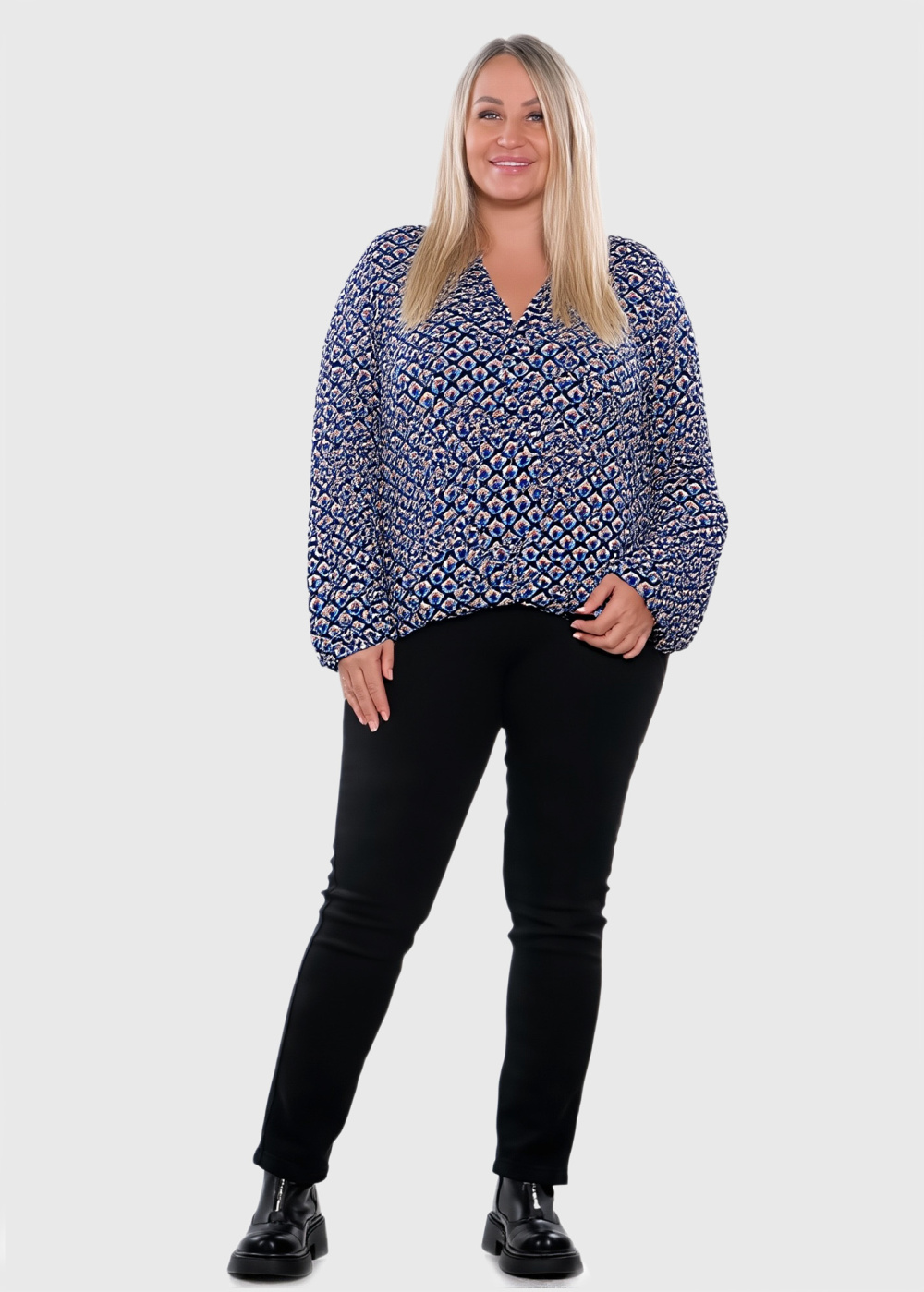 Kumara Lielo izmēru zila blūze ar rakstu