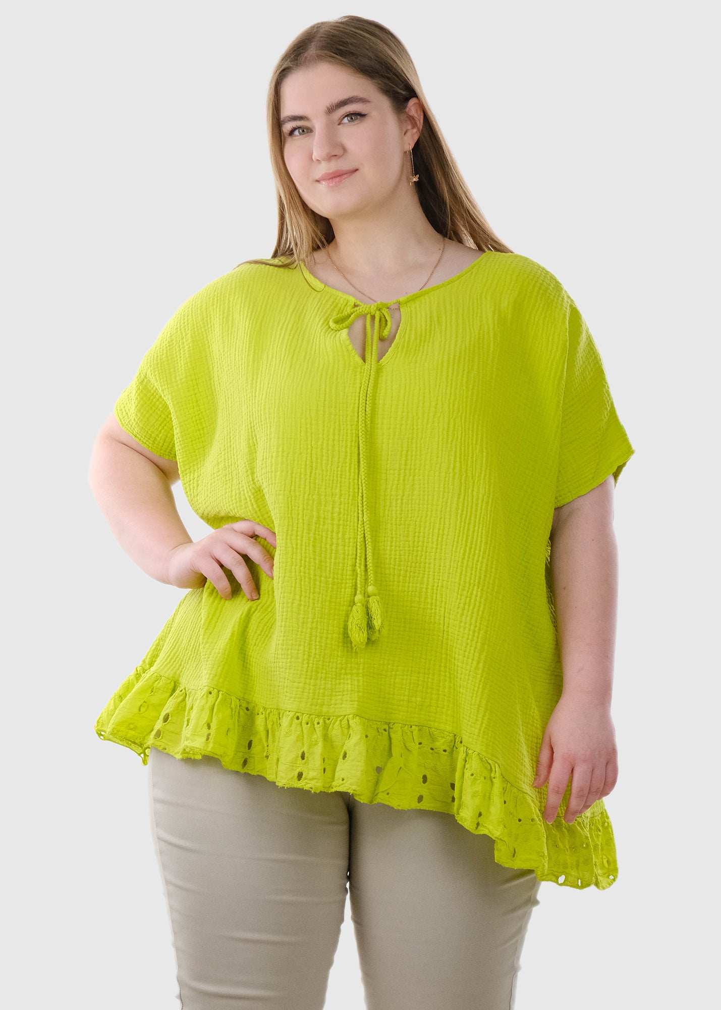 Piera Lielo izmēru neona zaļa blūze ar mežģīnēm