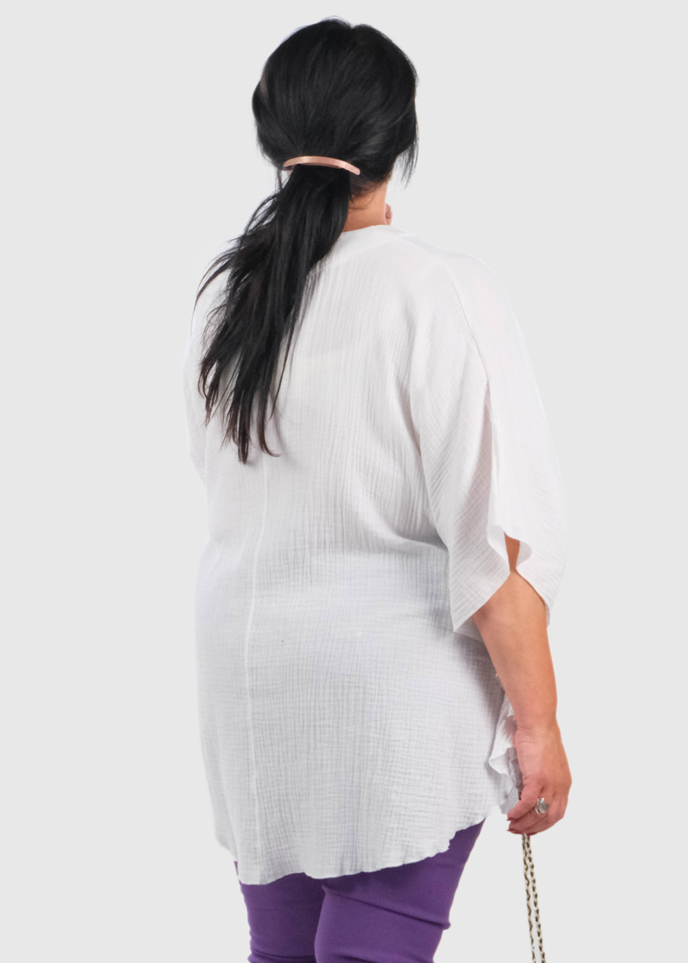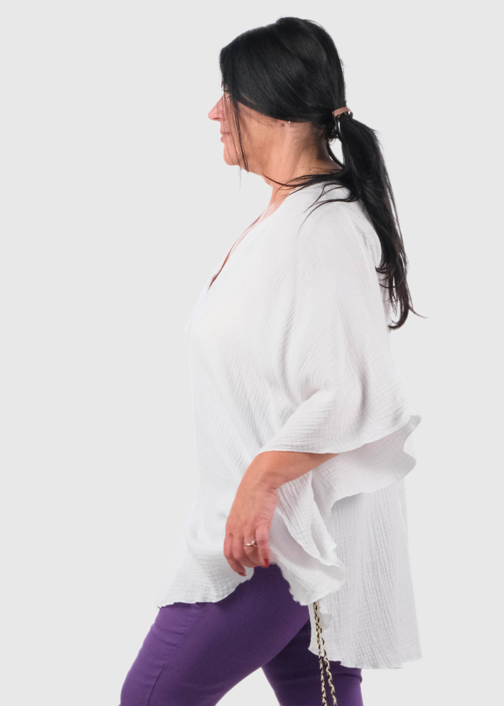 Pilar Lielo izmēru balta blūze ar V-veida izgriezumu