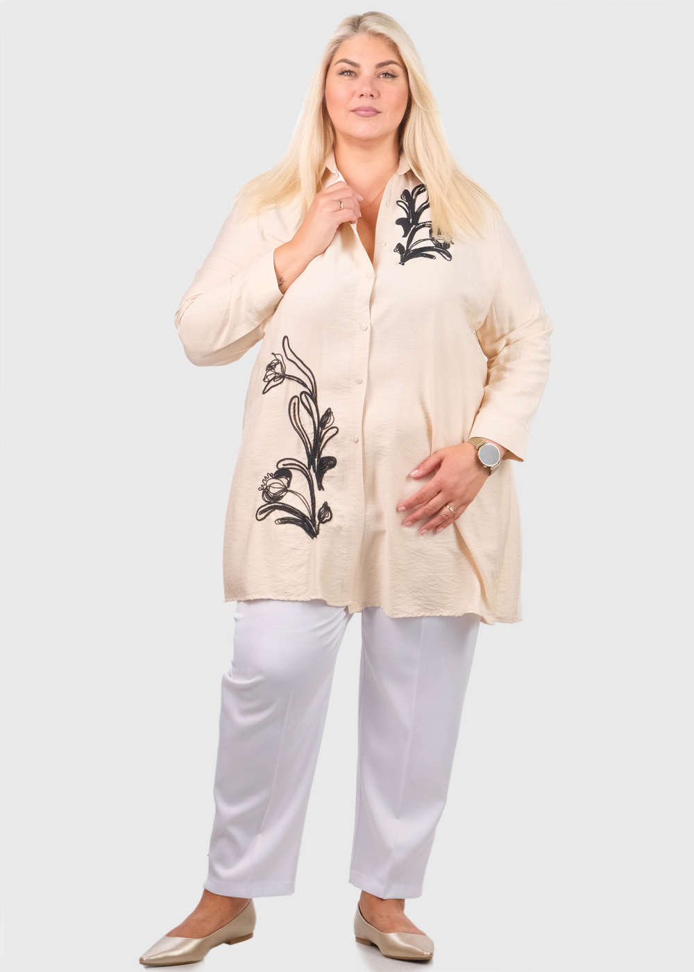 Tillen Lielo izmēru bēša blūze ar izšuvumu
