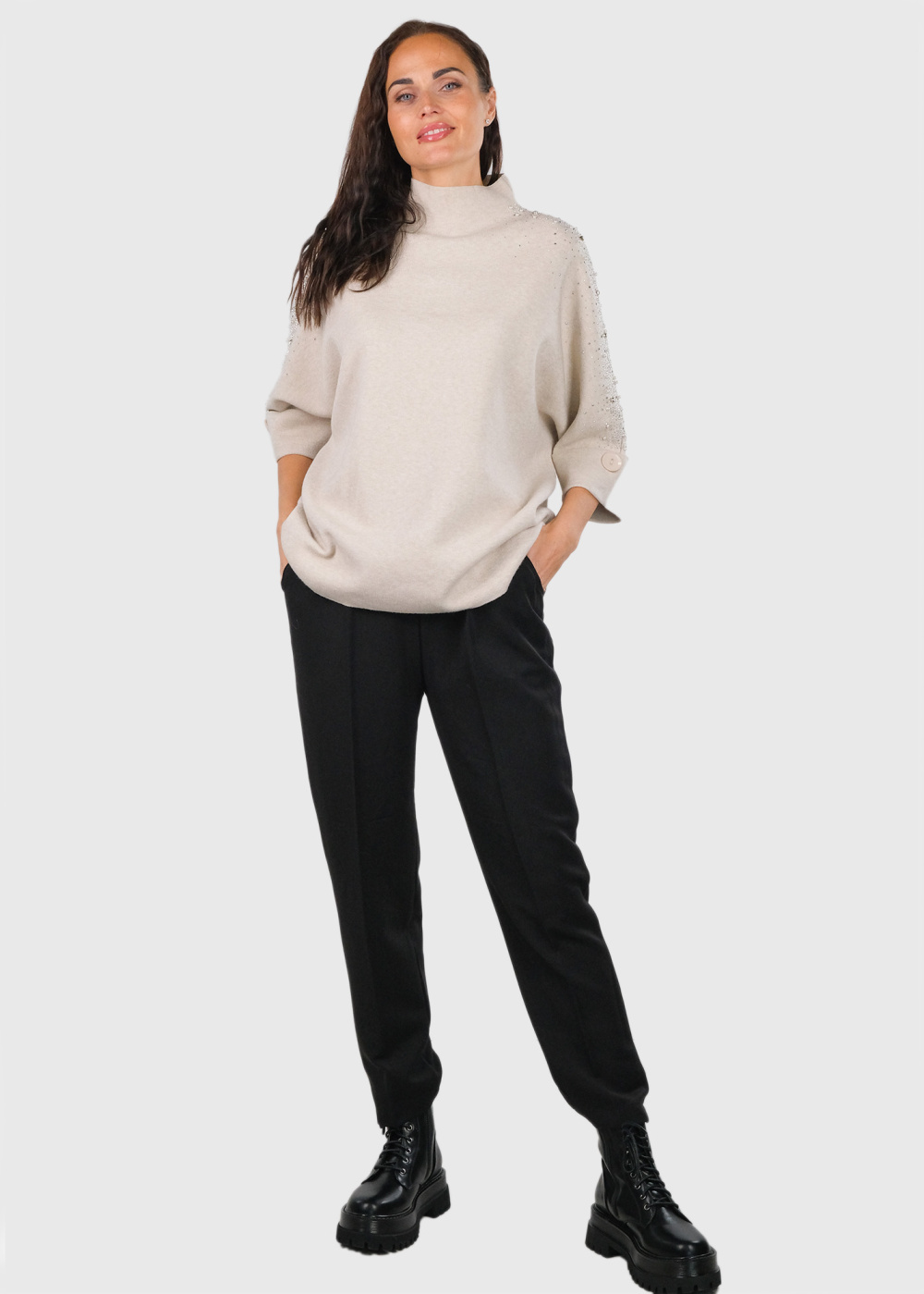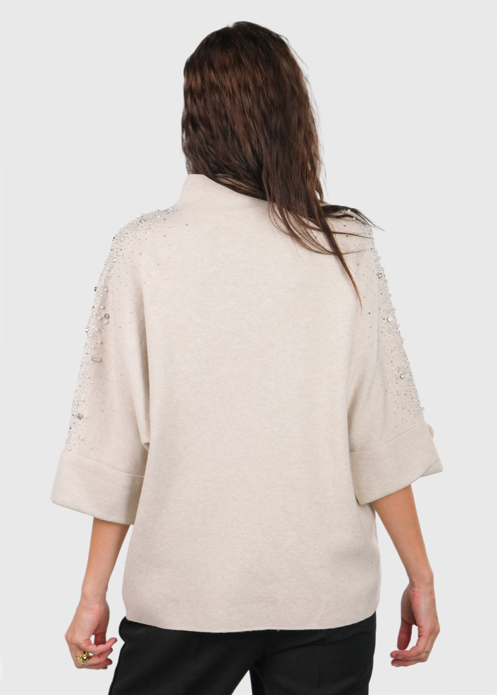 Adelaide gaiši bēšs džemperis ar pērlēm