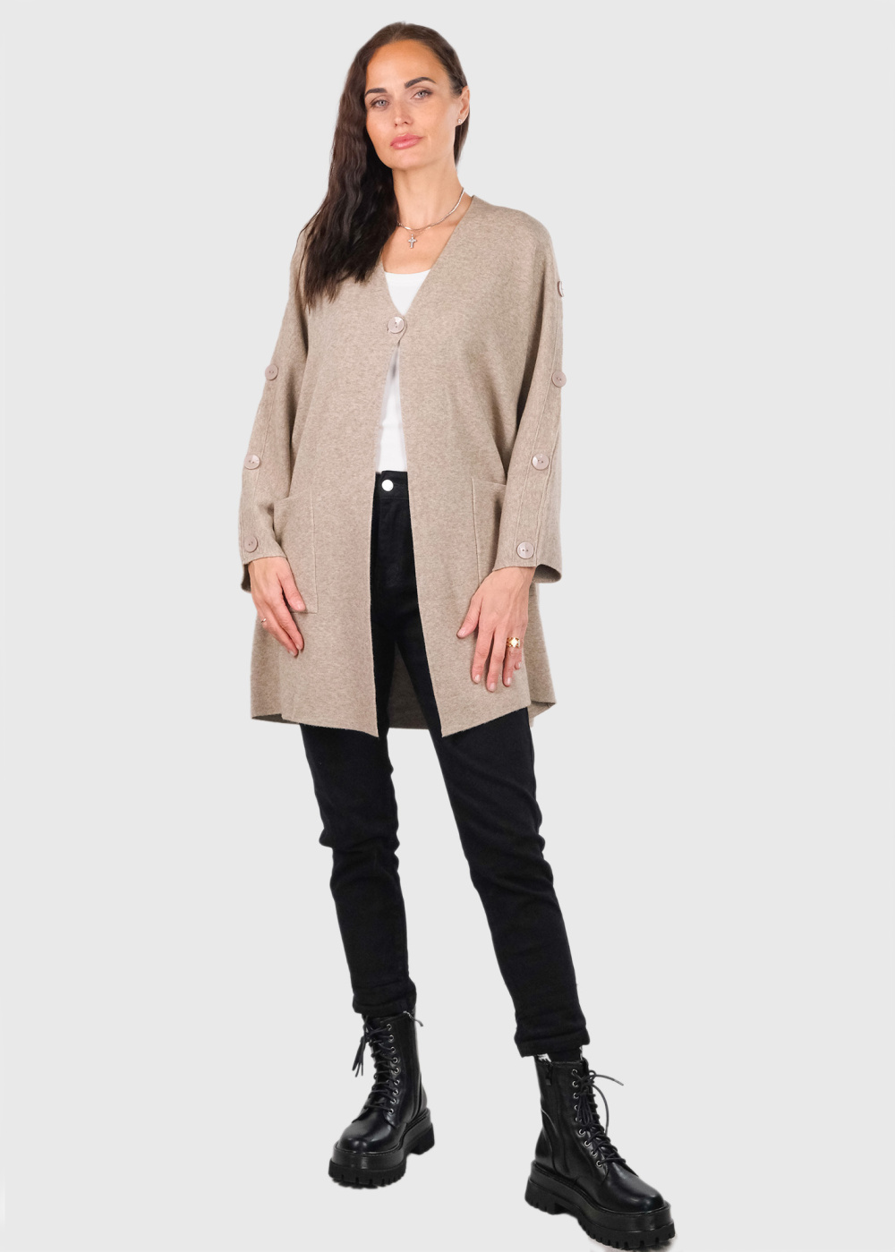 Beatrice bēšs kardigans ar pogām