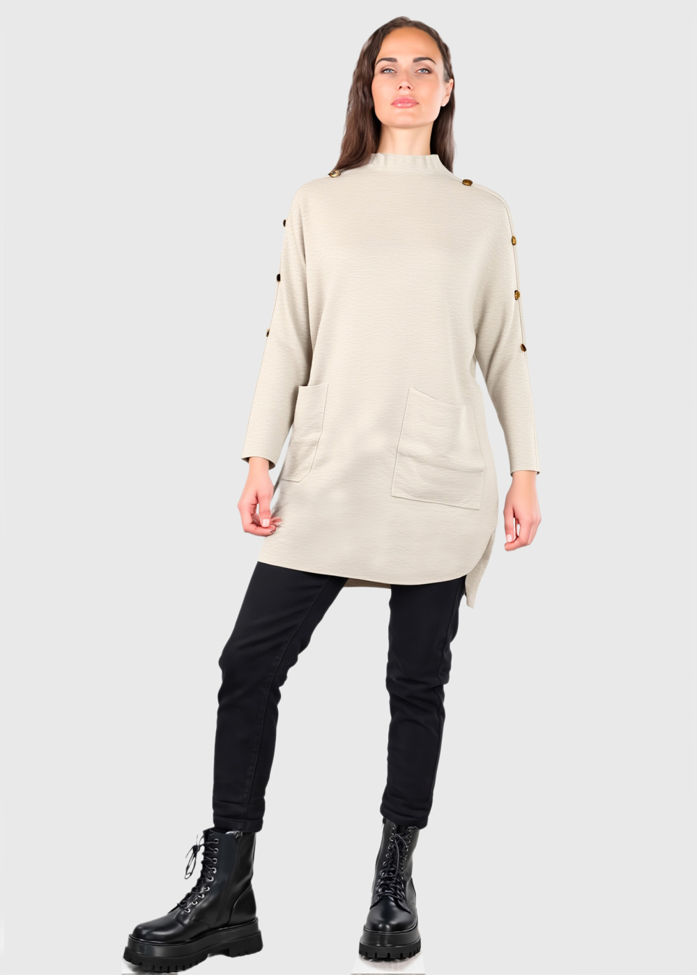 Cammie bēšs pagarināts džemperis