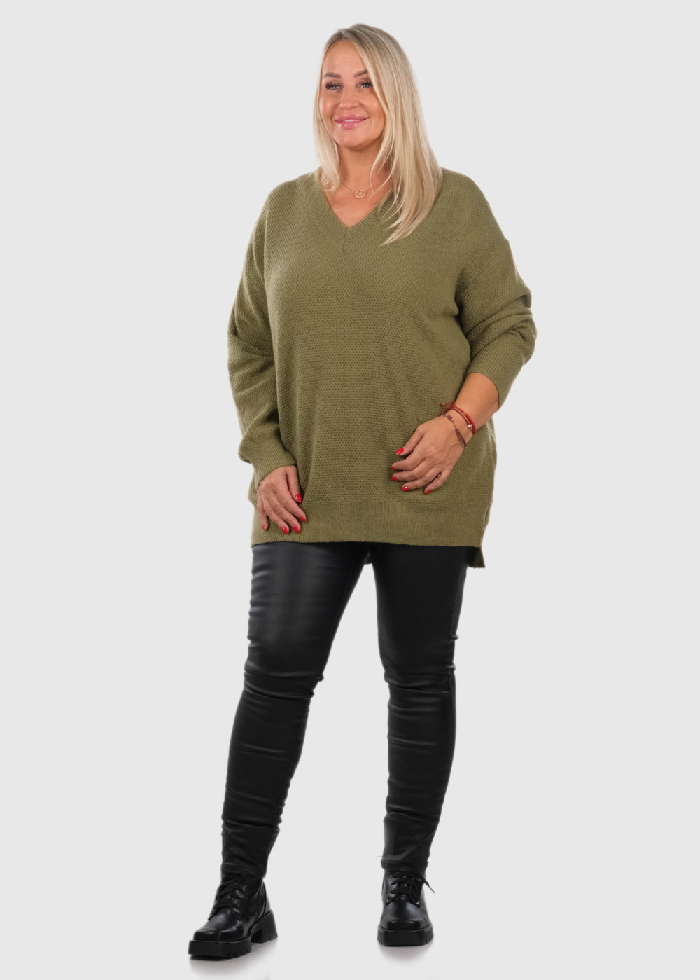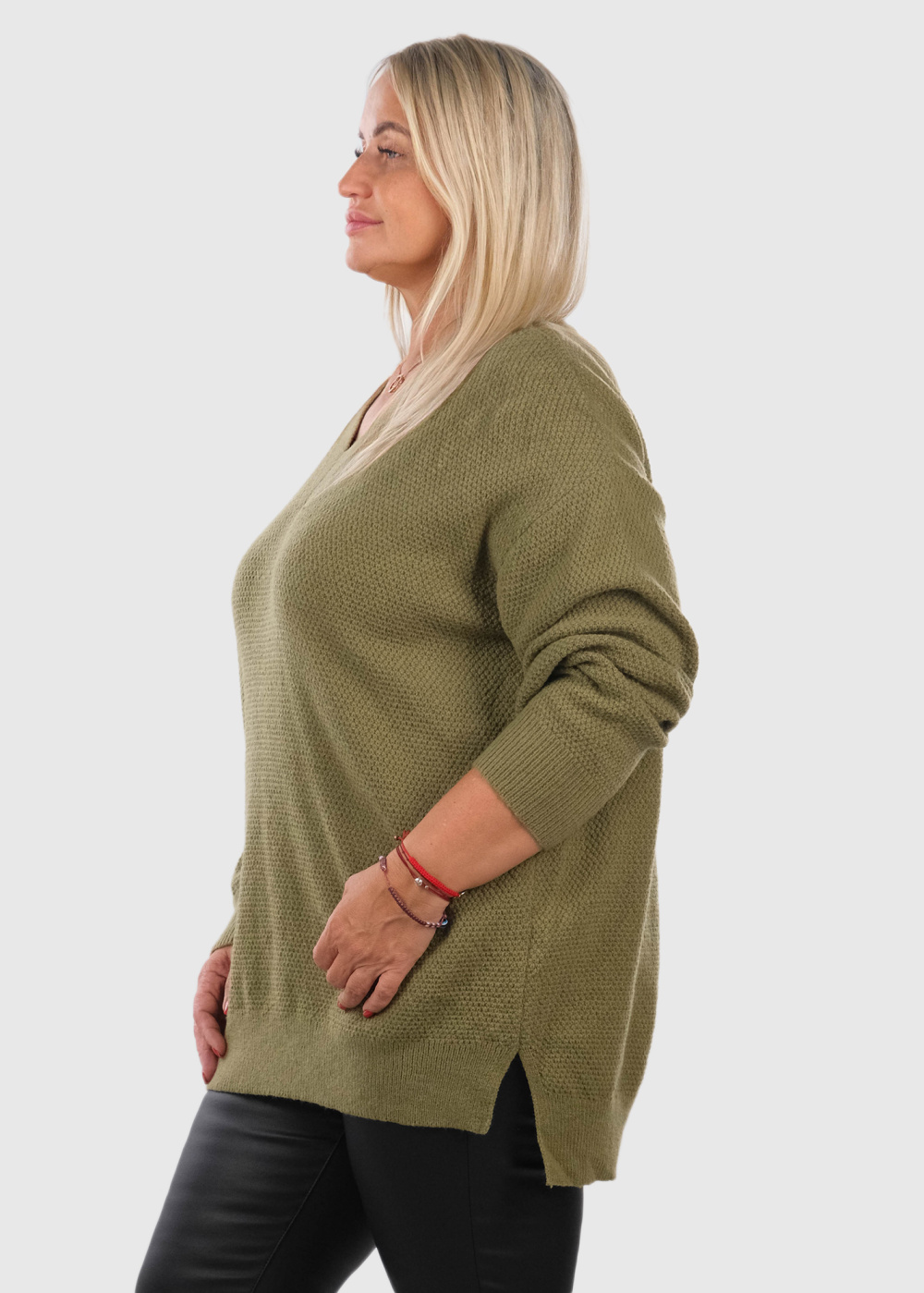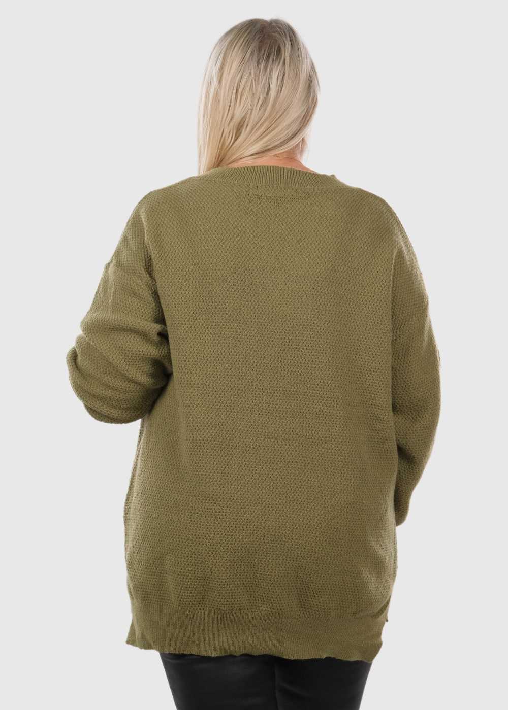 Dakarya Lielo izmēru haki džemperis ar V-veida izgriezumu