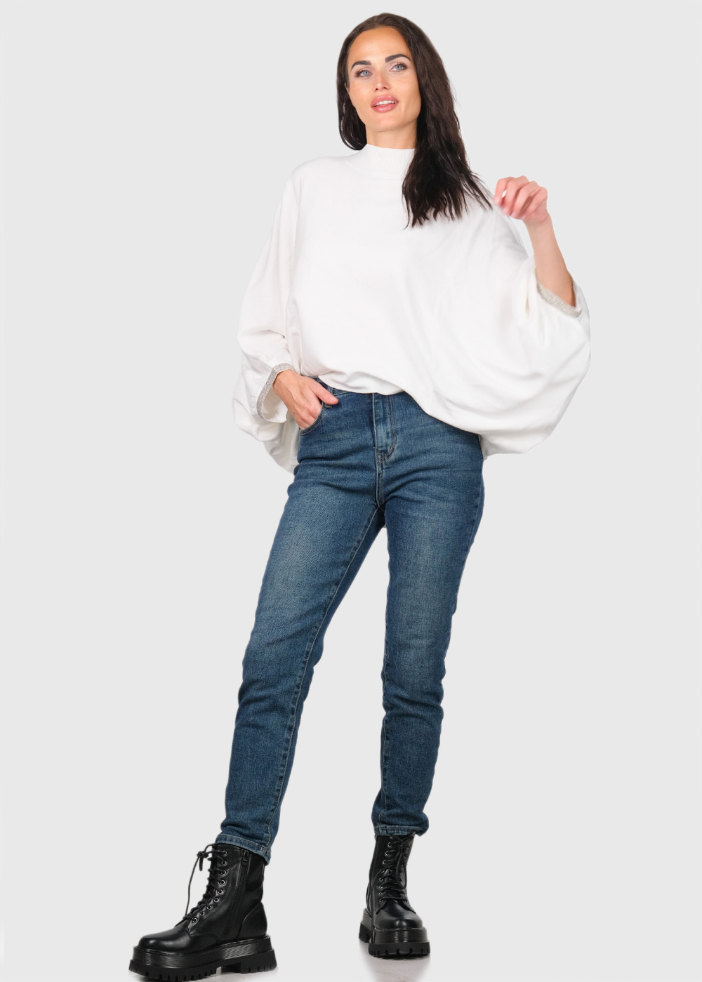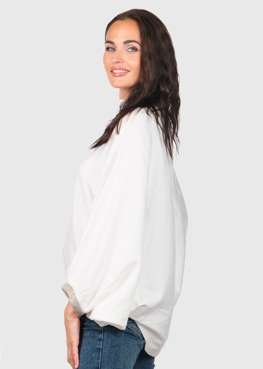 Daniella balts brīva piegriezuma džemperis