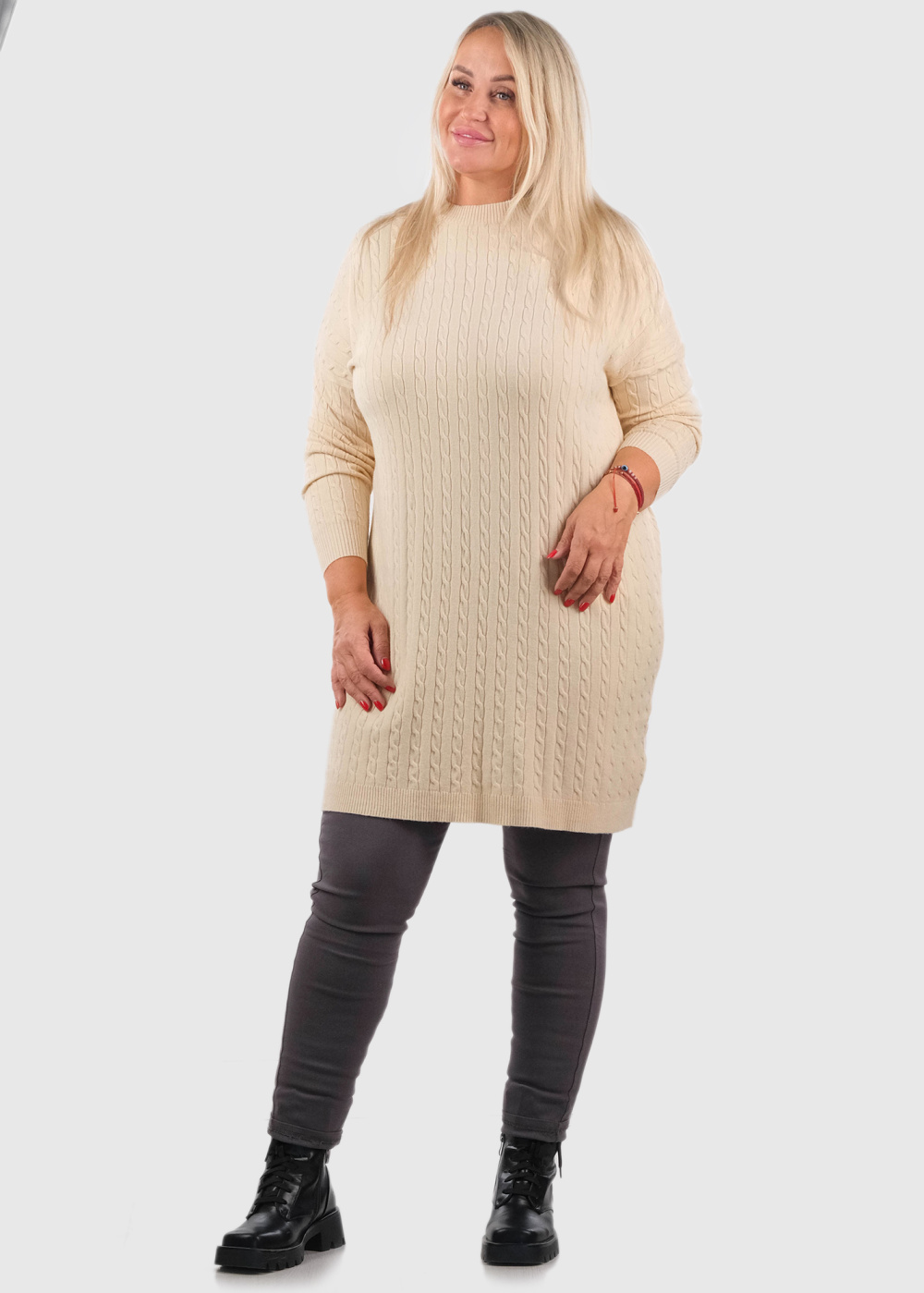 Guzel Lielo izmēru bēša džemperkleita