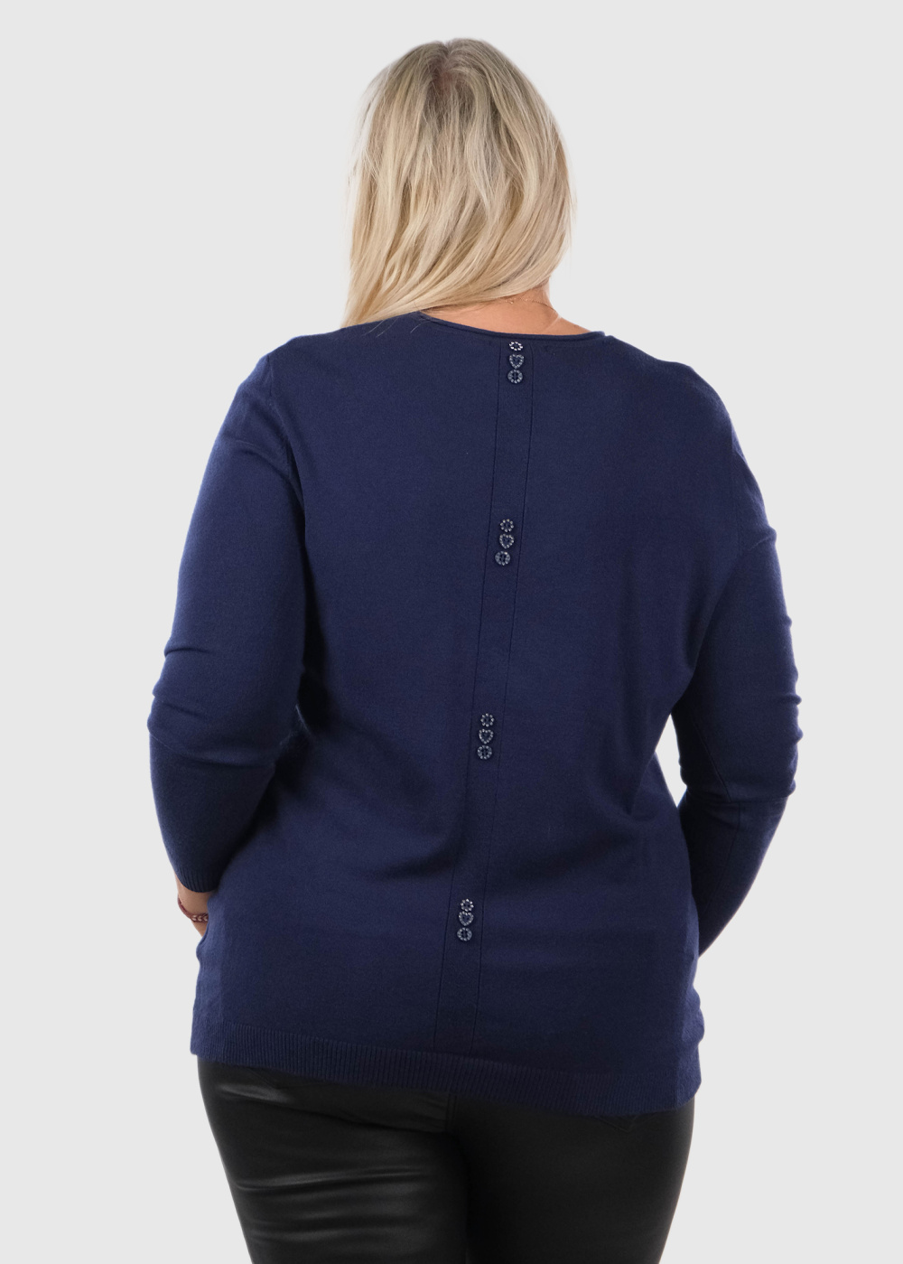 Irina Lielo izmēru tumši zils džemperis ar kabatām