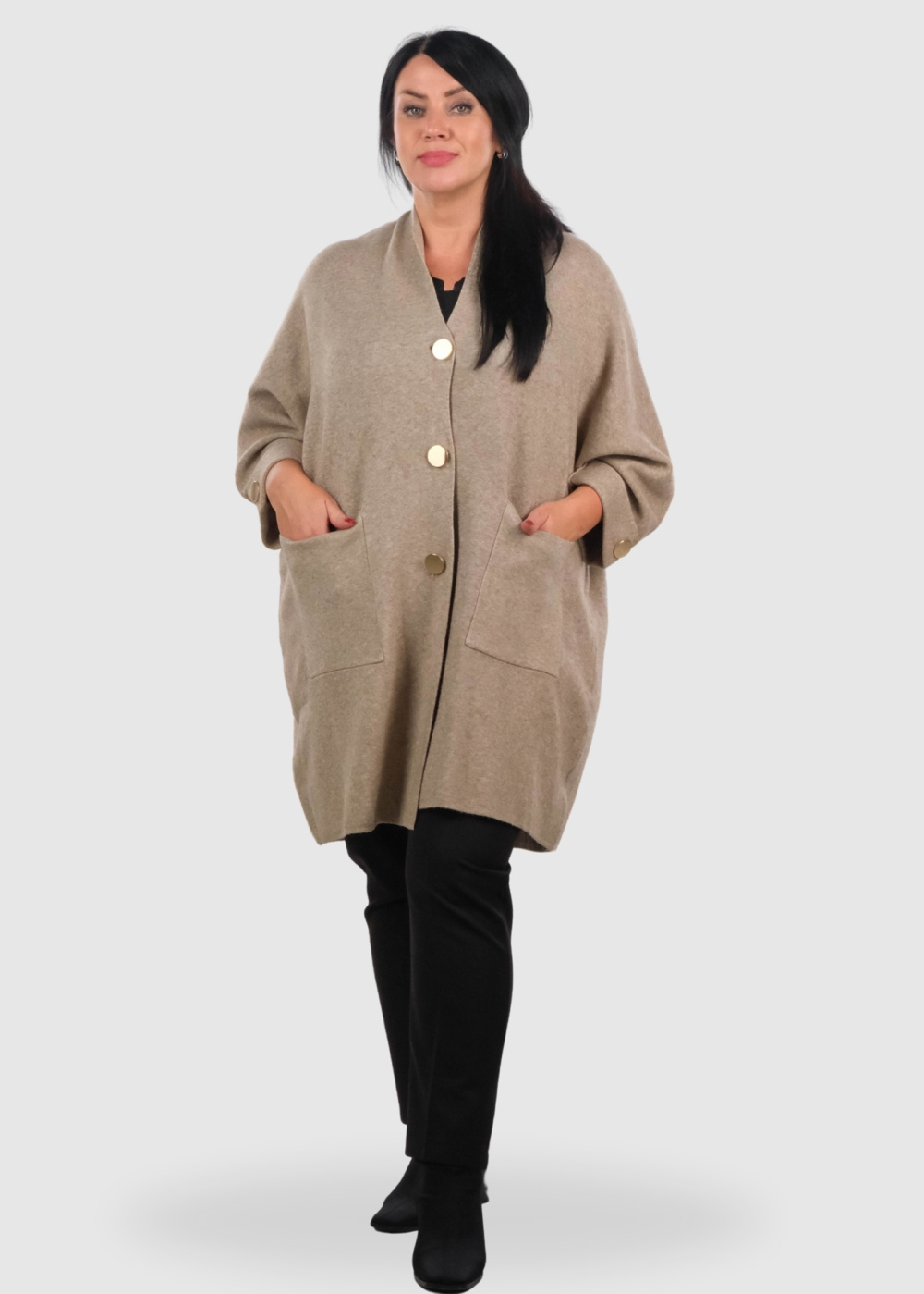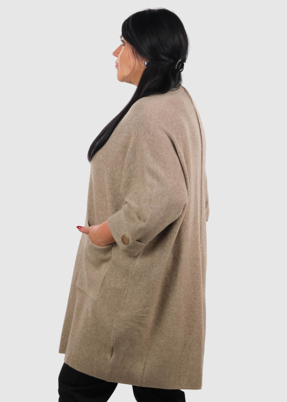 Jonna Lielo izmēru tumši bēšs kardigans ar pogām