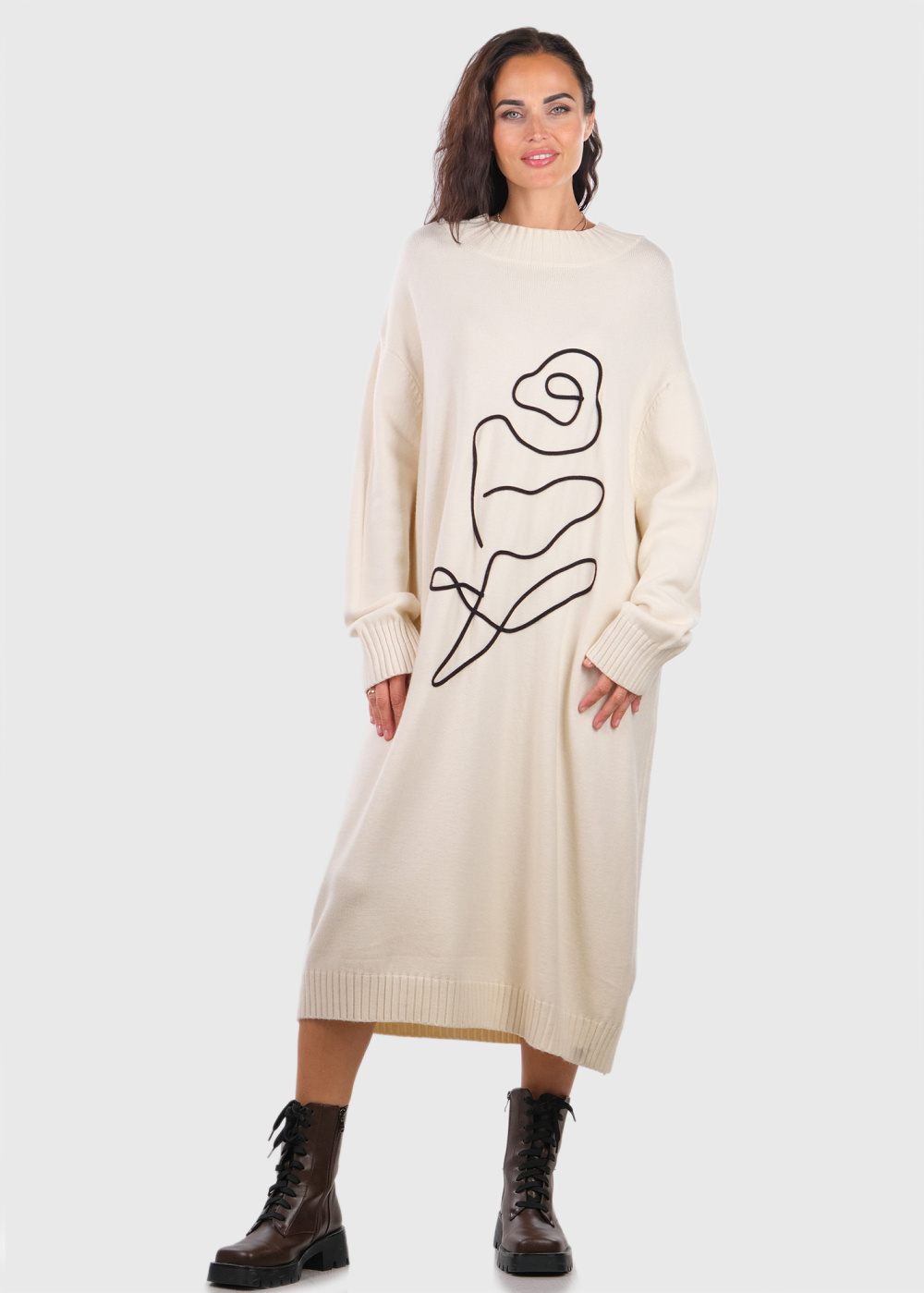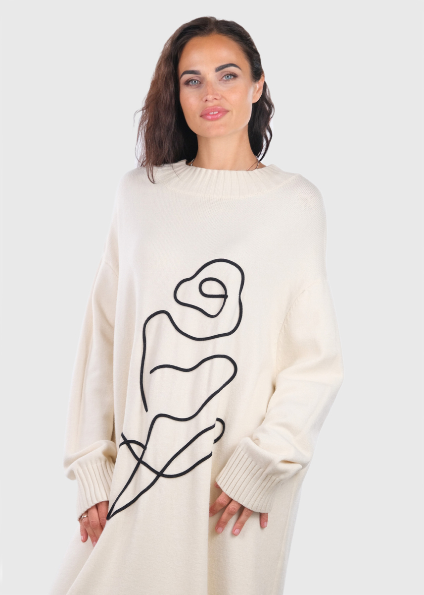 Kaiyo balta džemperkleita ar rakstu