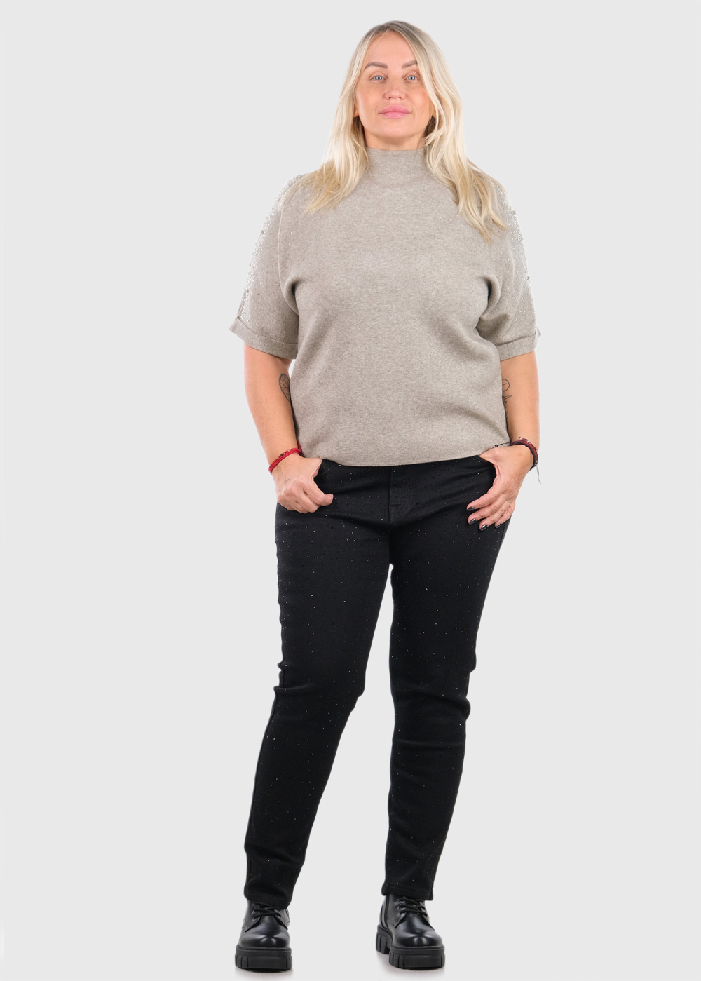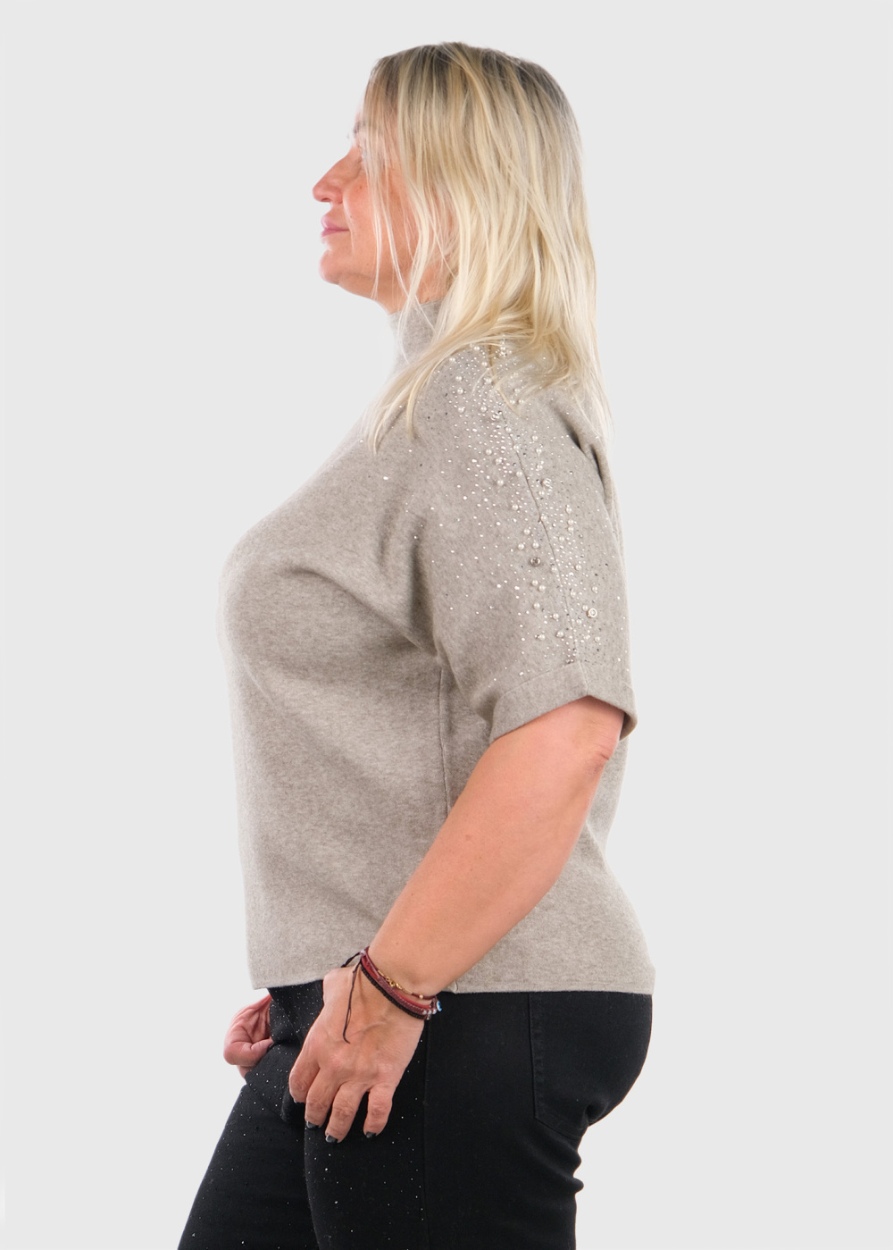Kaya bēšs džemperis ar pērlēm