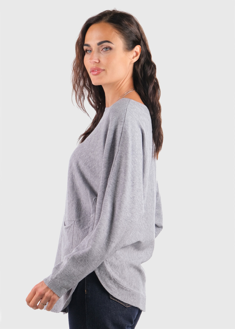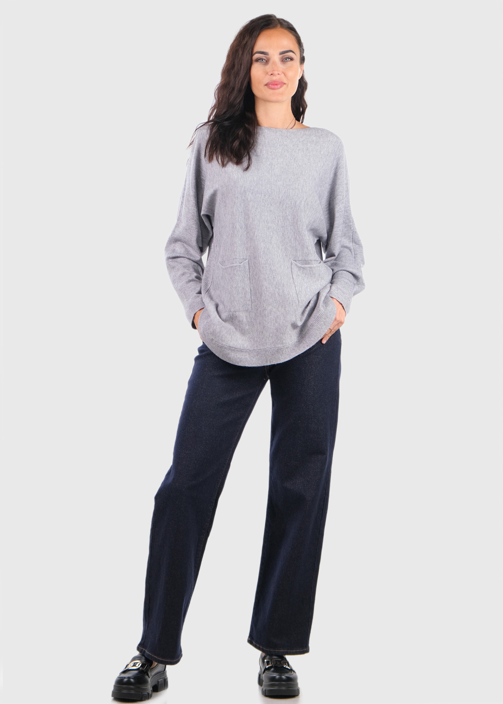 Keren pelēks džemperis ar kabatām