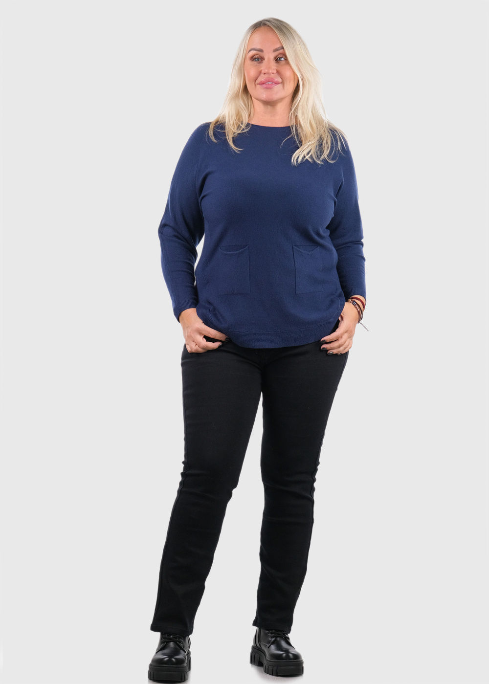 Keren tumši zils džemperis ar kabatām