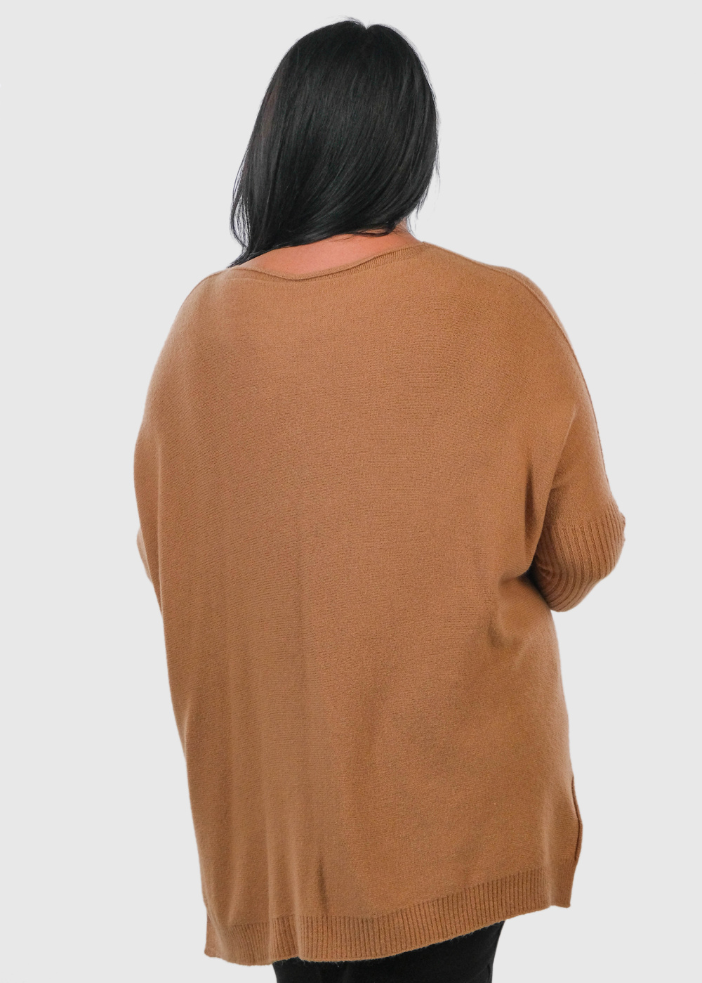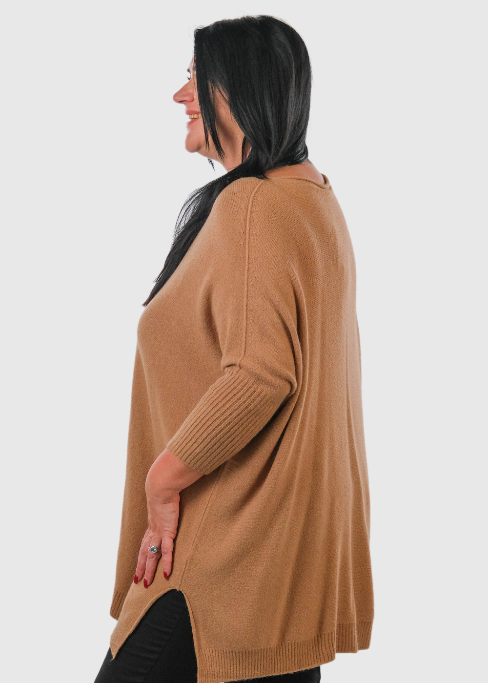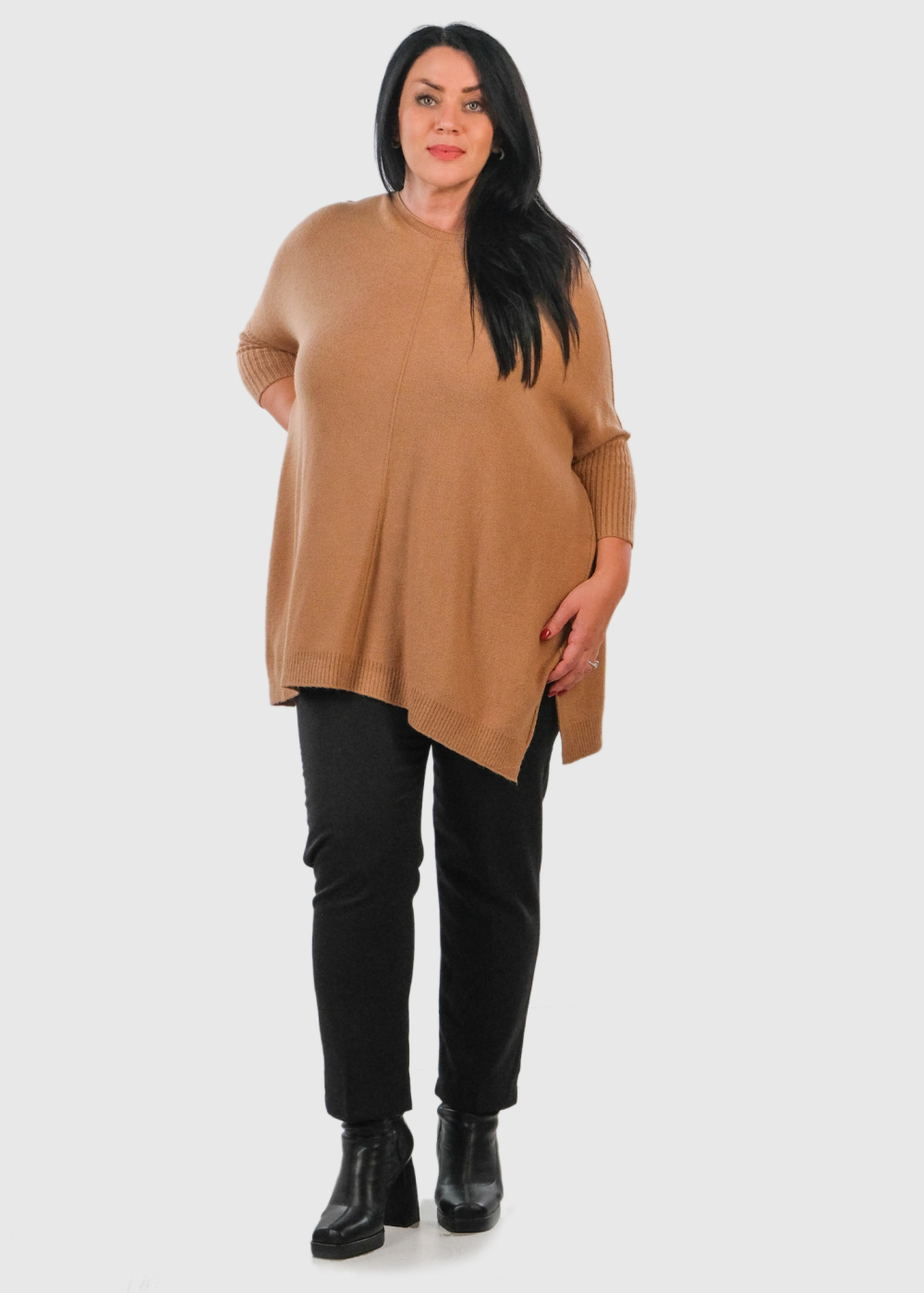 Lada Lielo izmēru bēšs džemperis ar šķēlumiem sānos