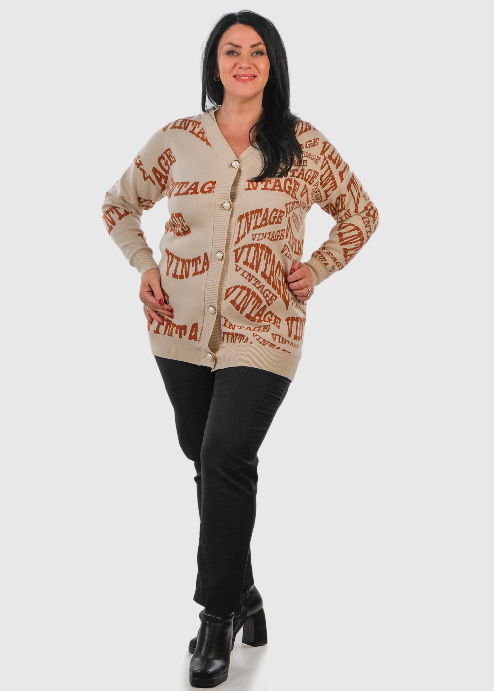Lale Lielo izmēru bēšs kardigans ar uzrakstu