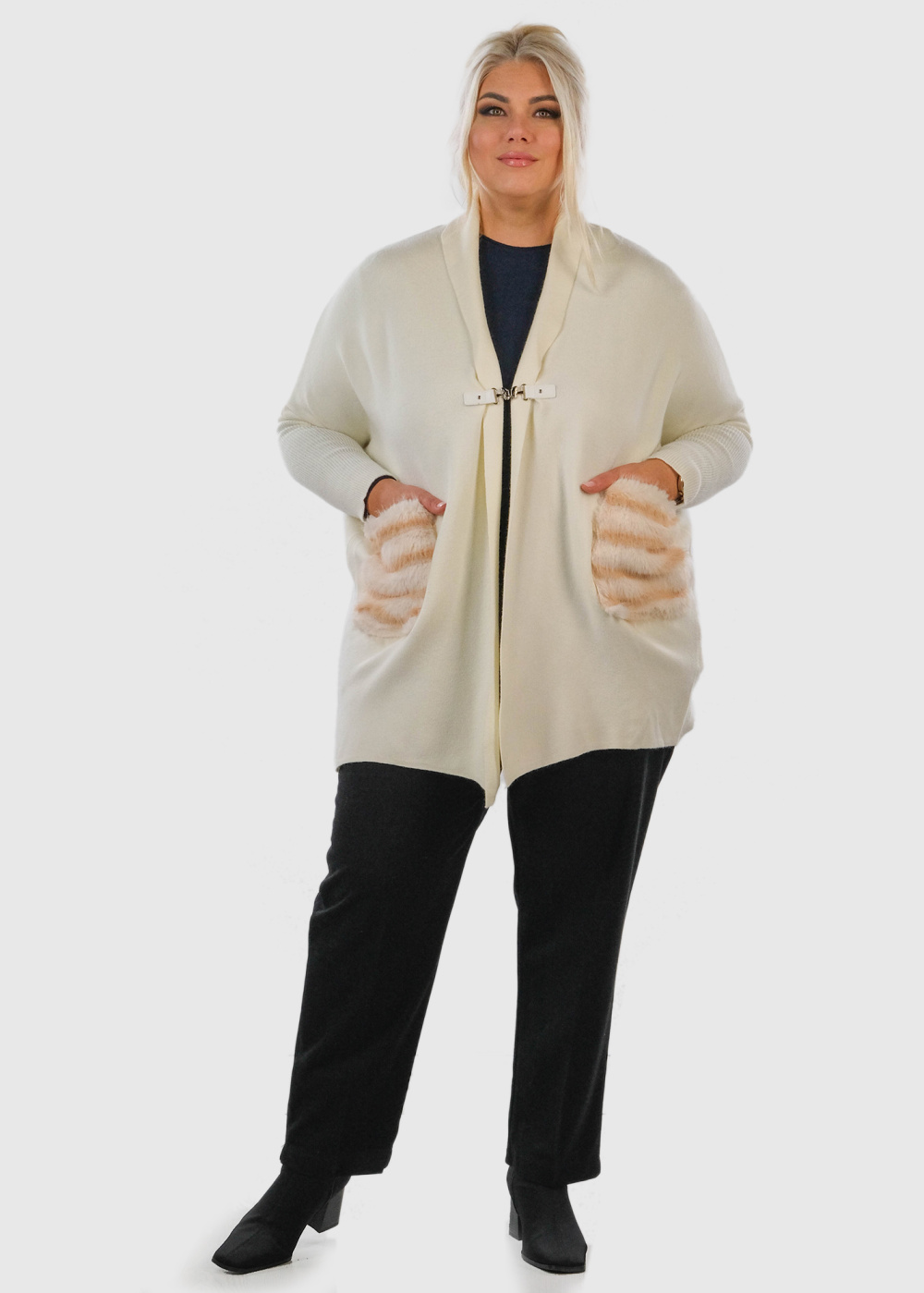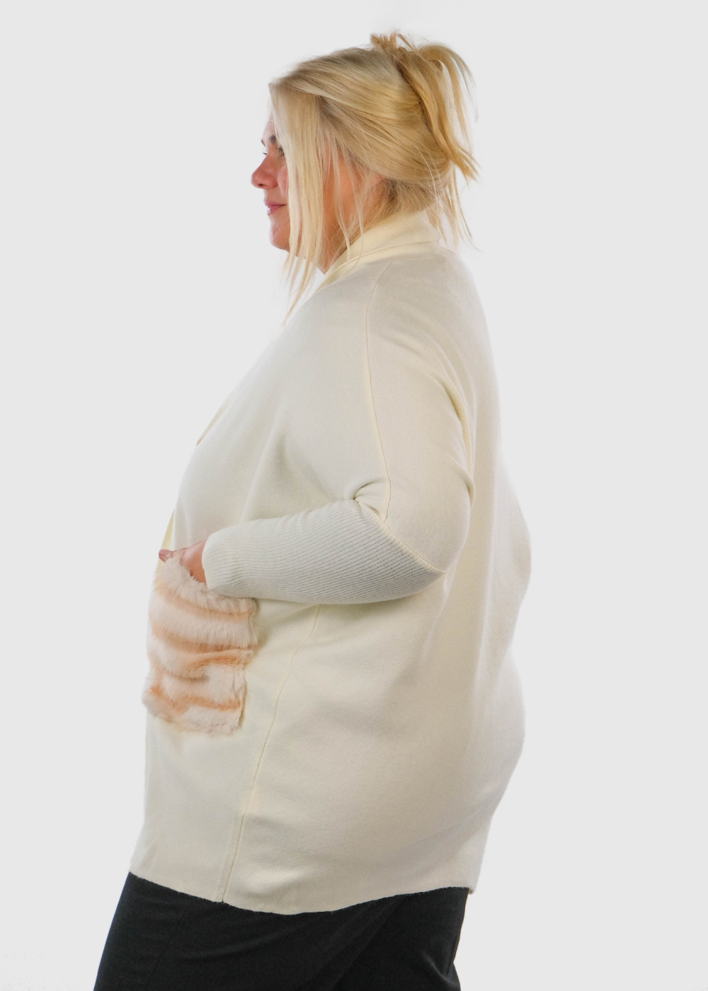 Liseli Lielo izmēru balts kardigans ar kabatām