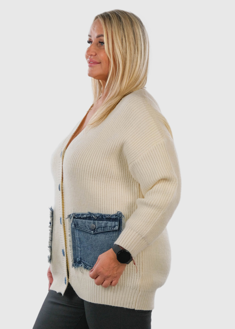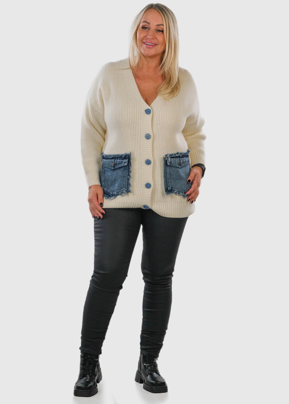 Lumina Lielo izmēru sieviešu kardigans ar kargo tipa kabatām