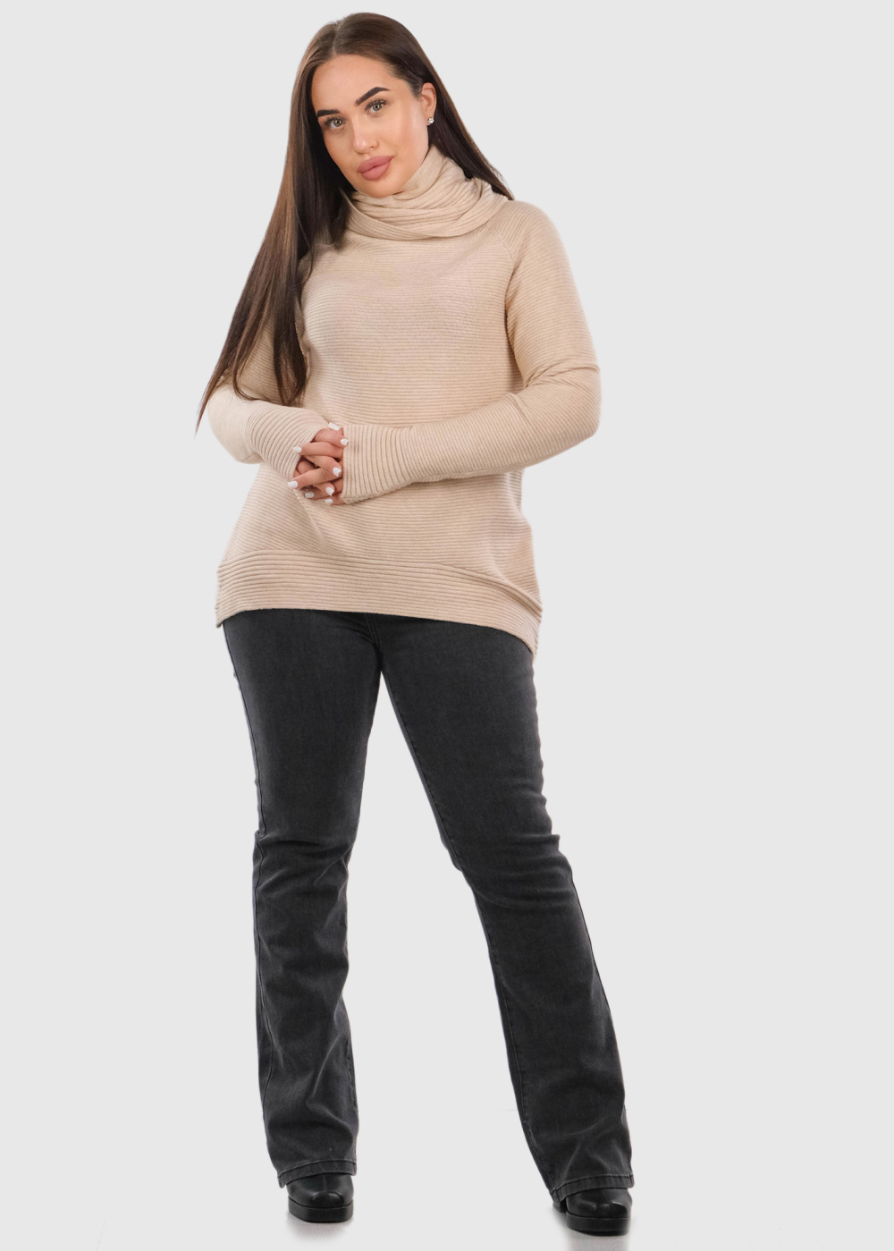 Luz gaiši bēšs džemperis ar augstu apkakli