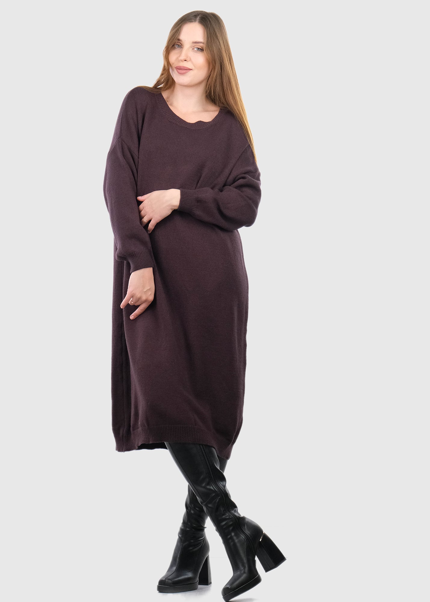 Miriana Lielo izmēru tumši brūna džemperkleita