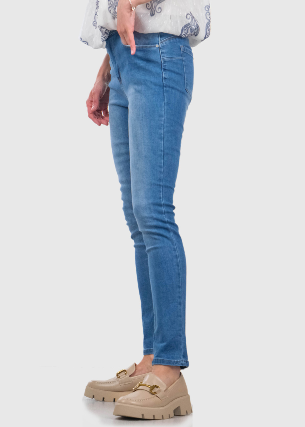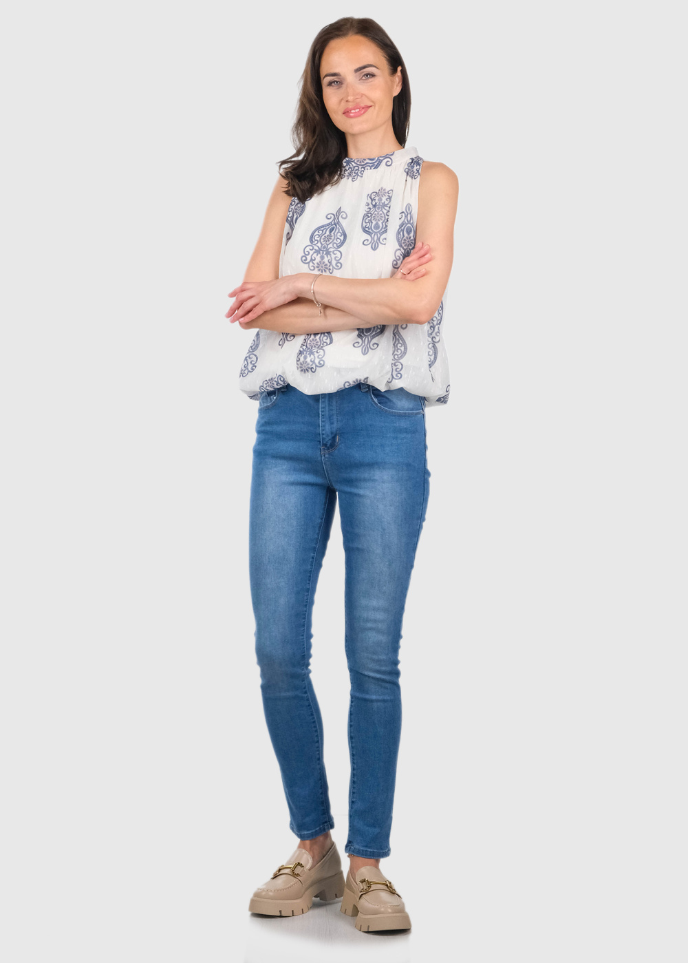 Alida Slim Fit zili sieviešu džinsi ar augstu jostasvietu