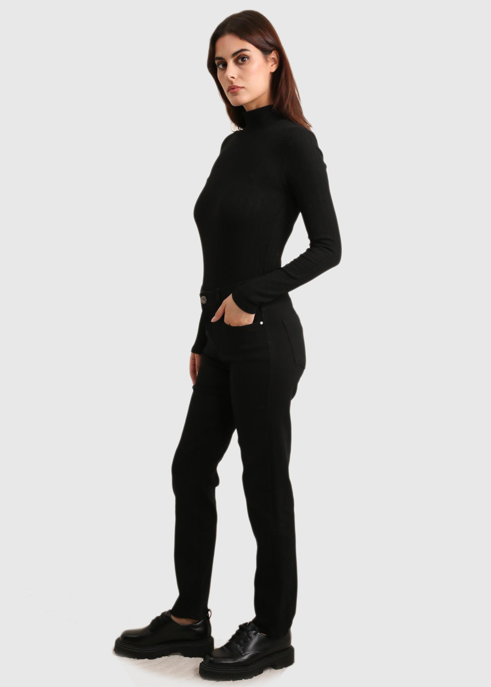 Dakaria melni sieviešu džinsi ar augstu jostasvietu