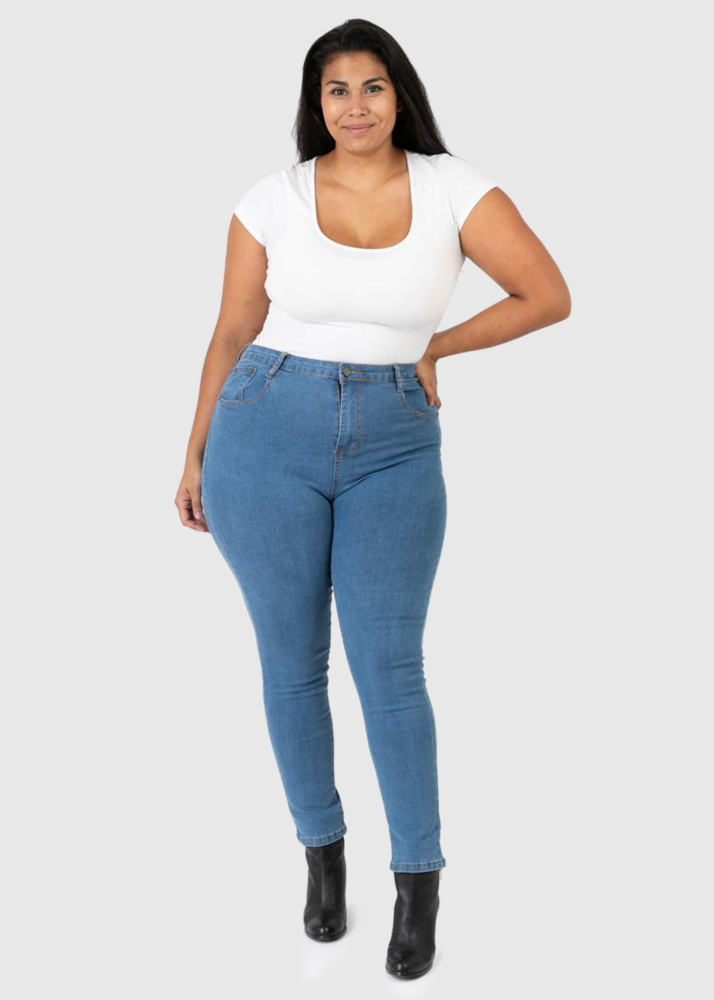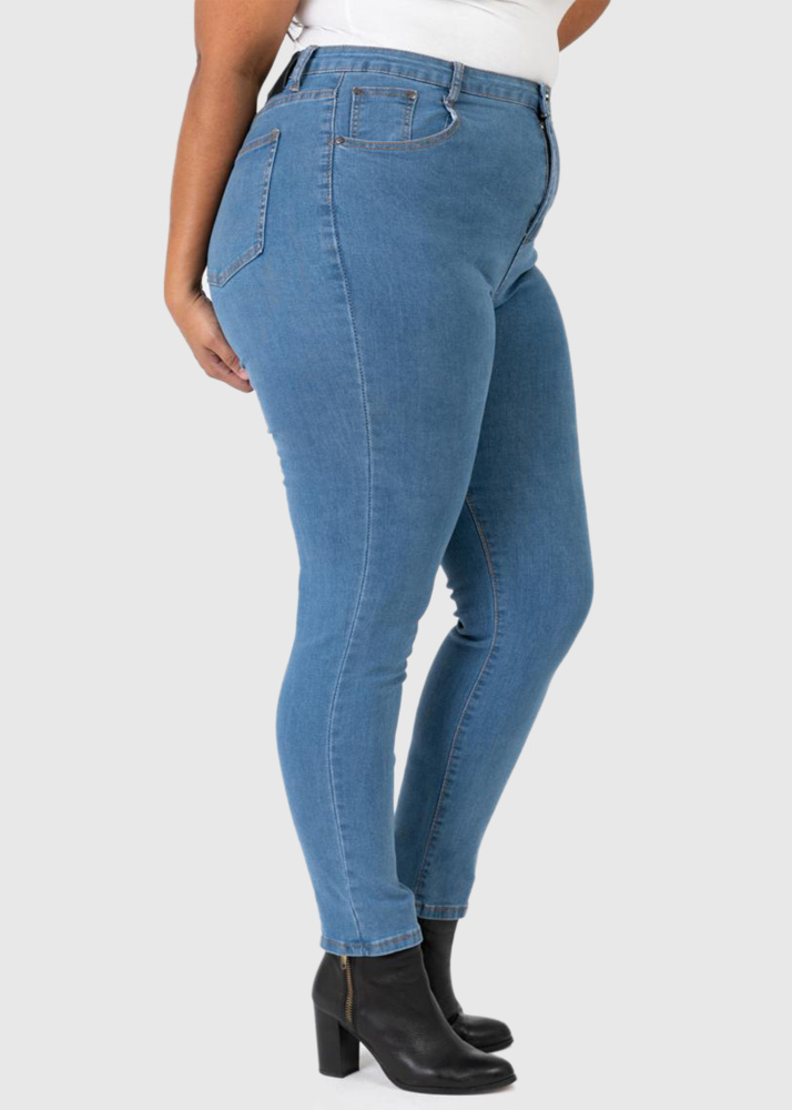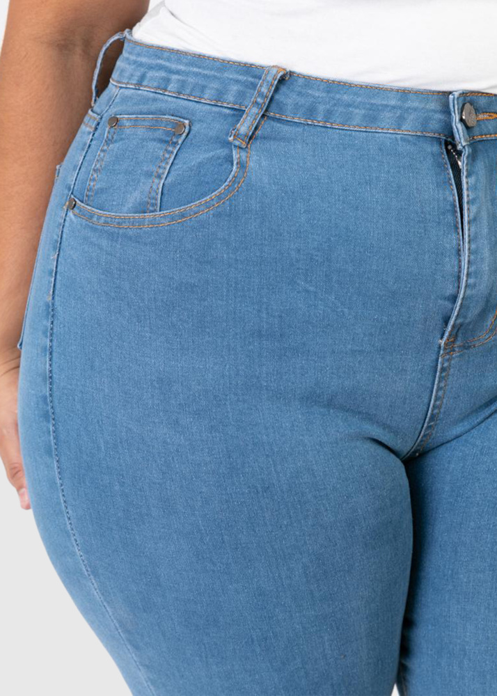 Evita Mom Fit Lielo izmēru zili džinsi