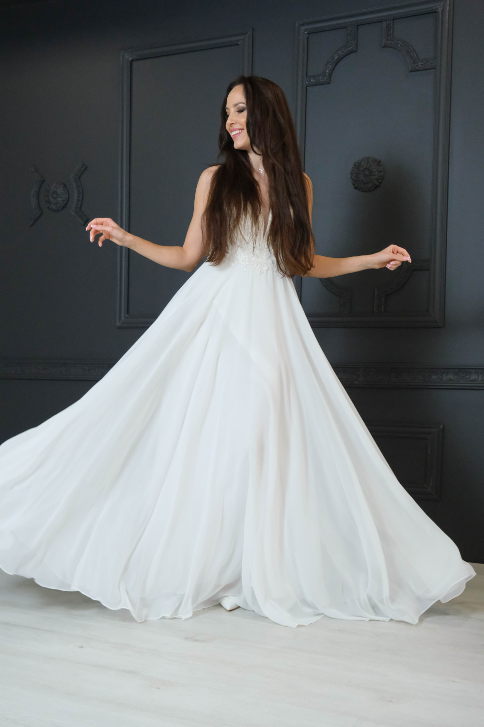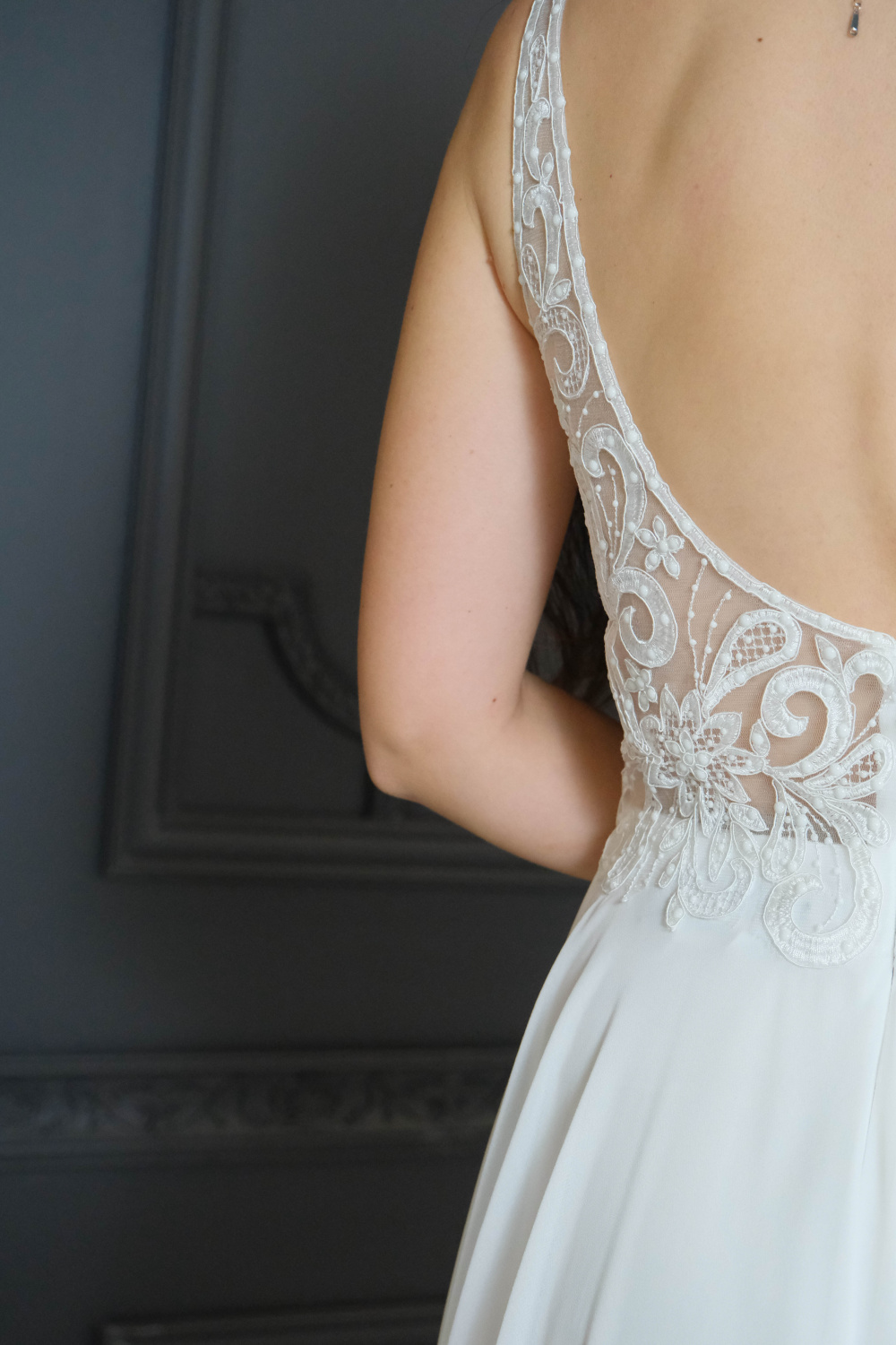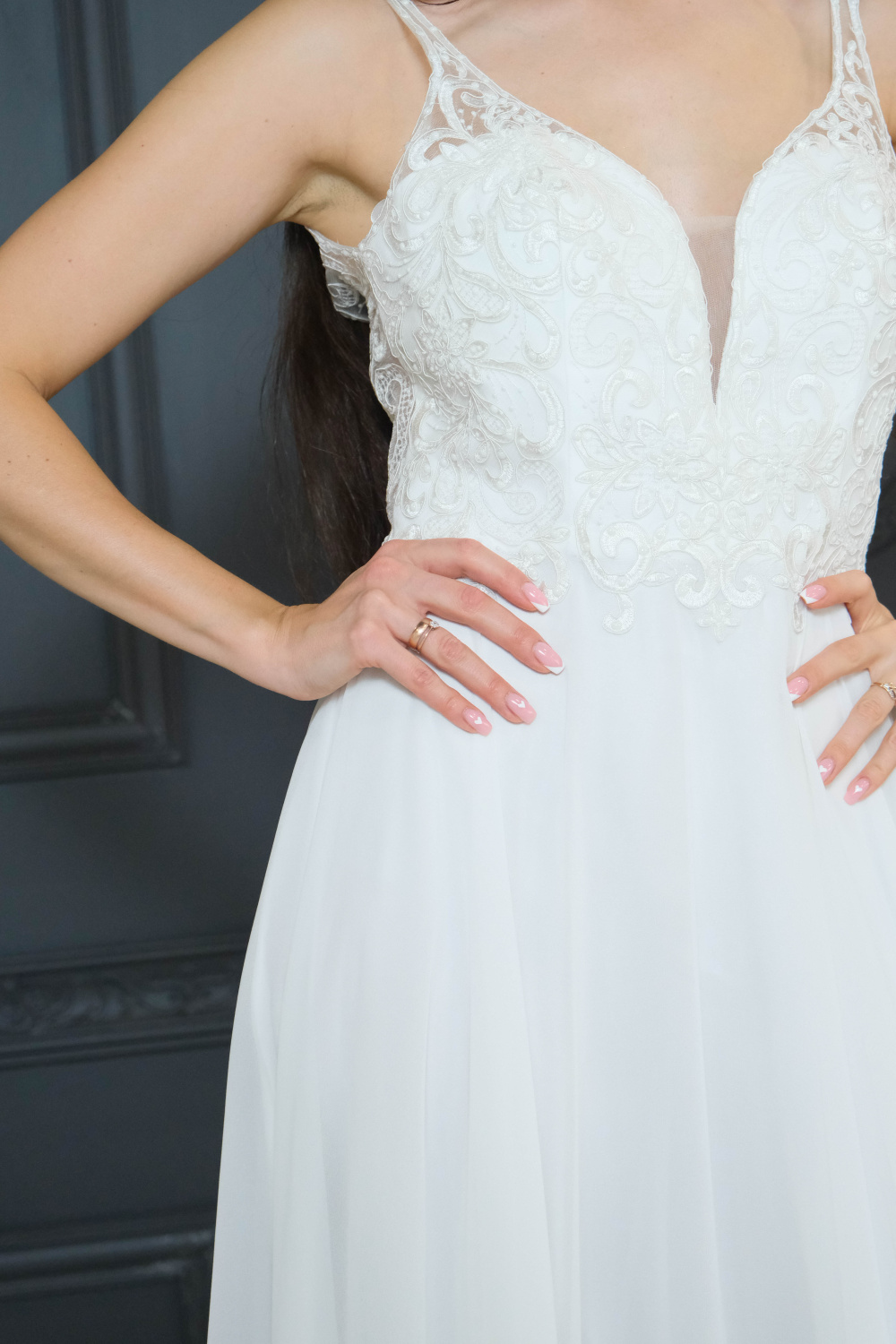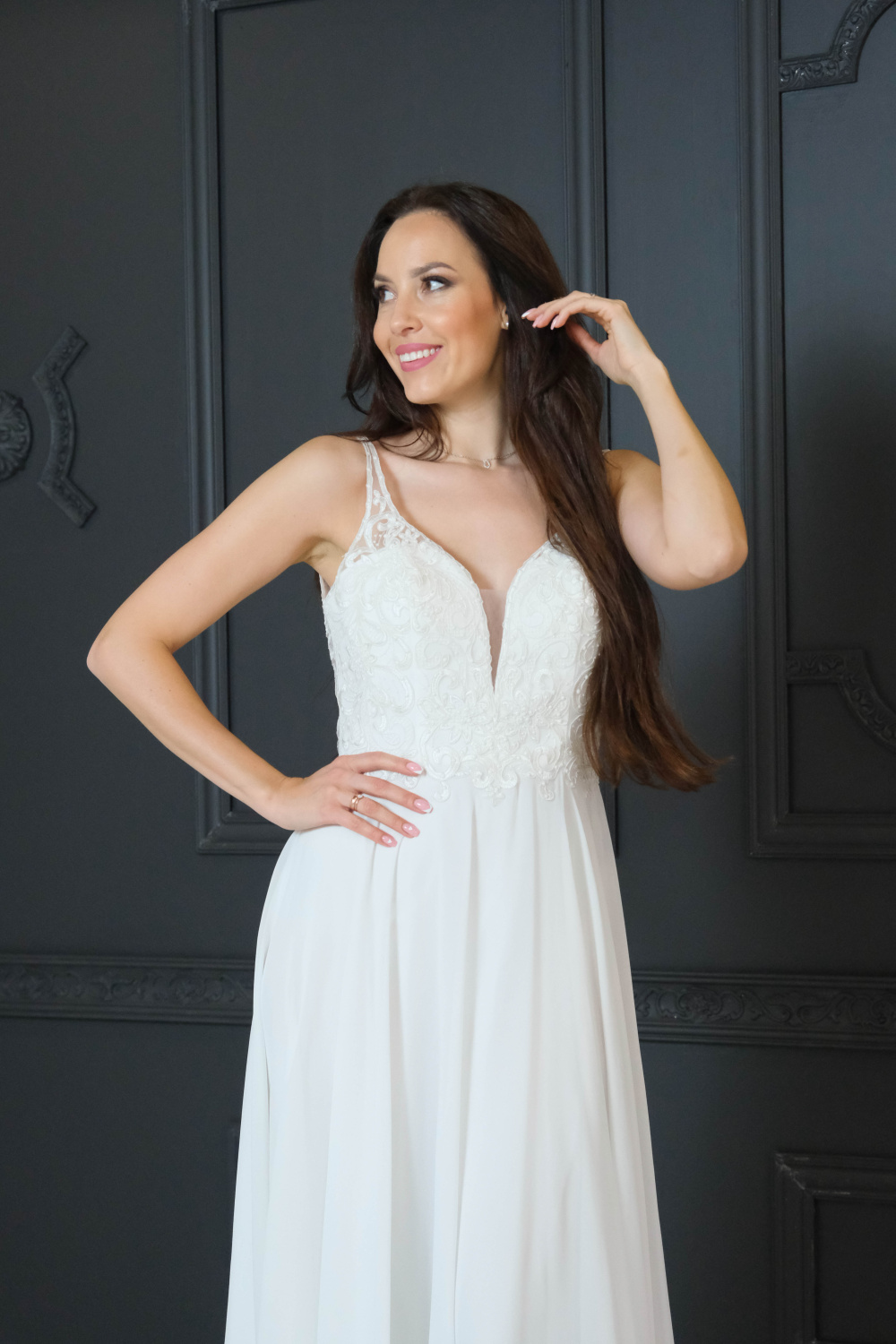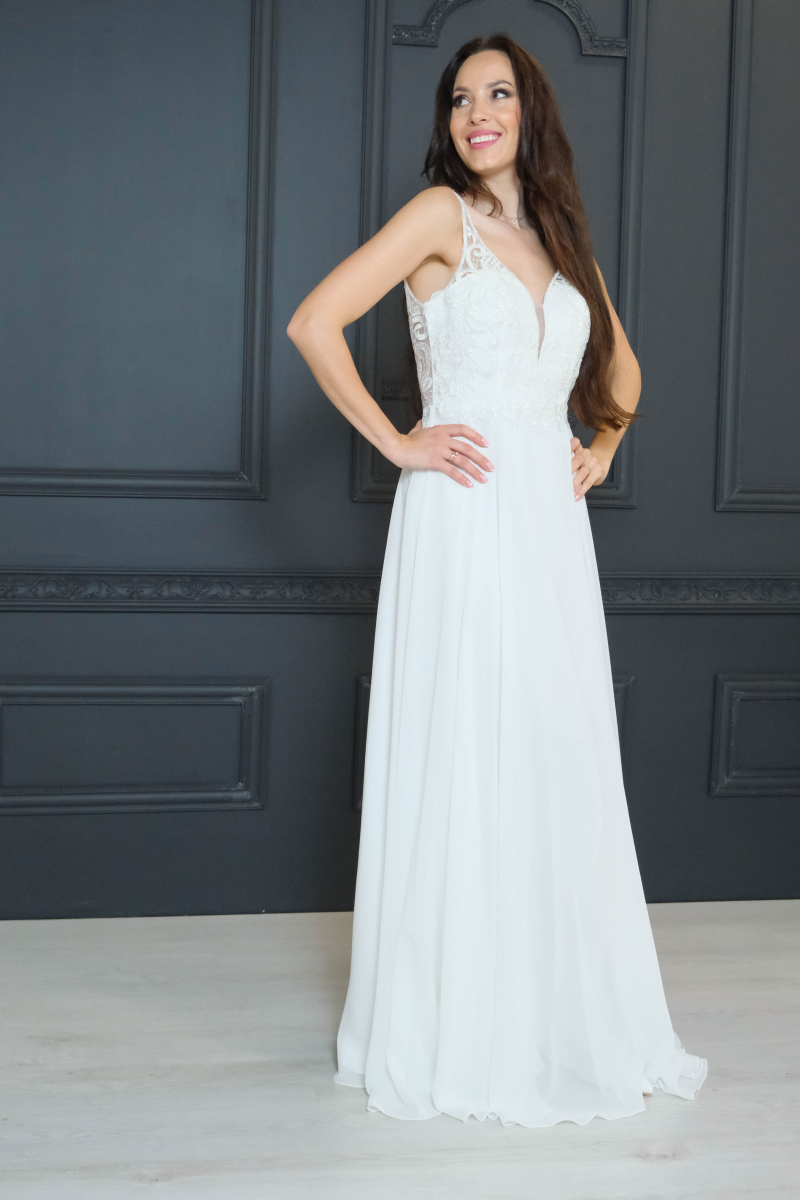 elegantām lencītēm un V-veida dekoltē.