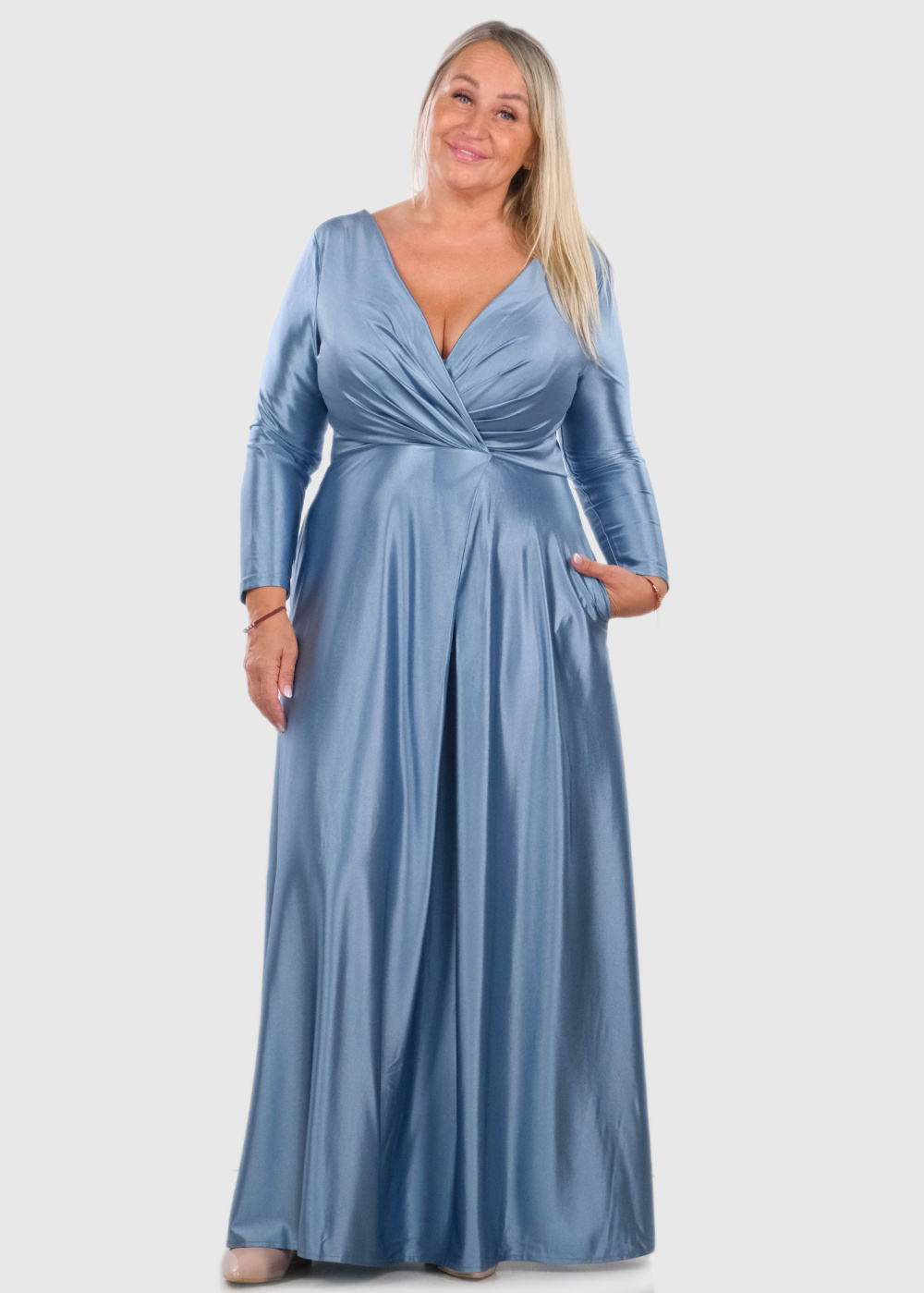 Aefre Lielo izmēru zila vakarkleita ar V-veida izgriezumu
