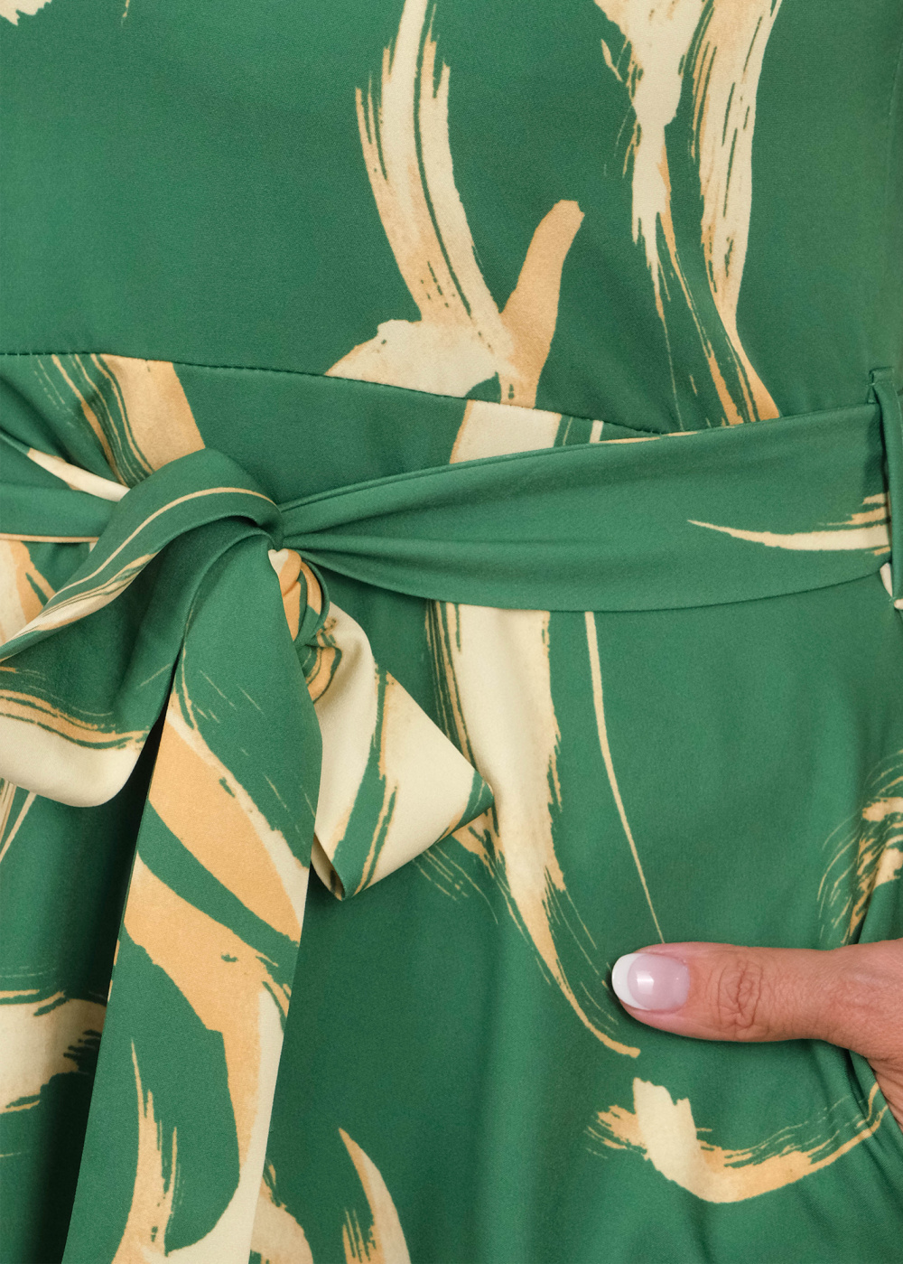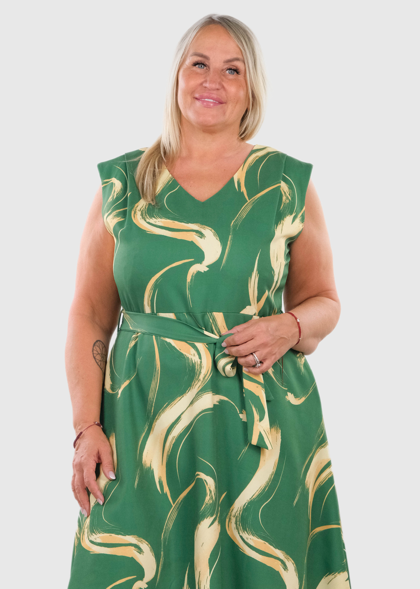 Anzu Lielo izmēru zaļa īsa vakarkleita ar rakstu