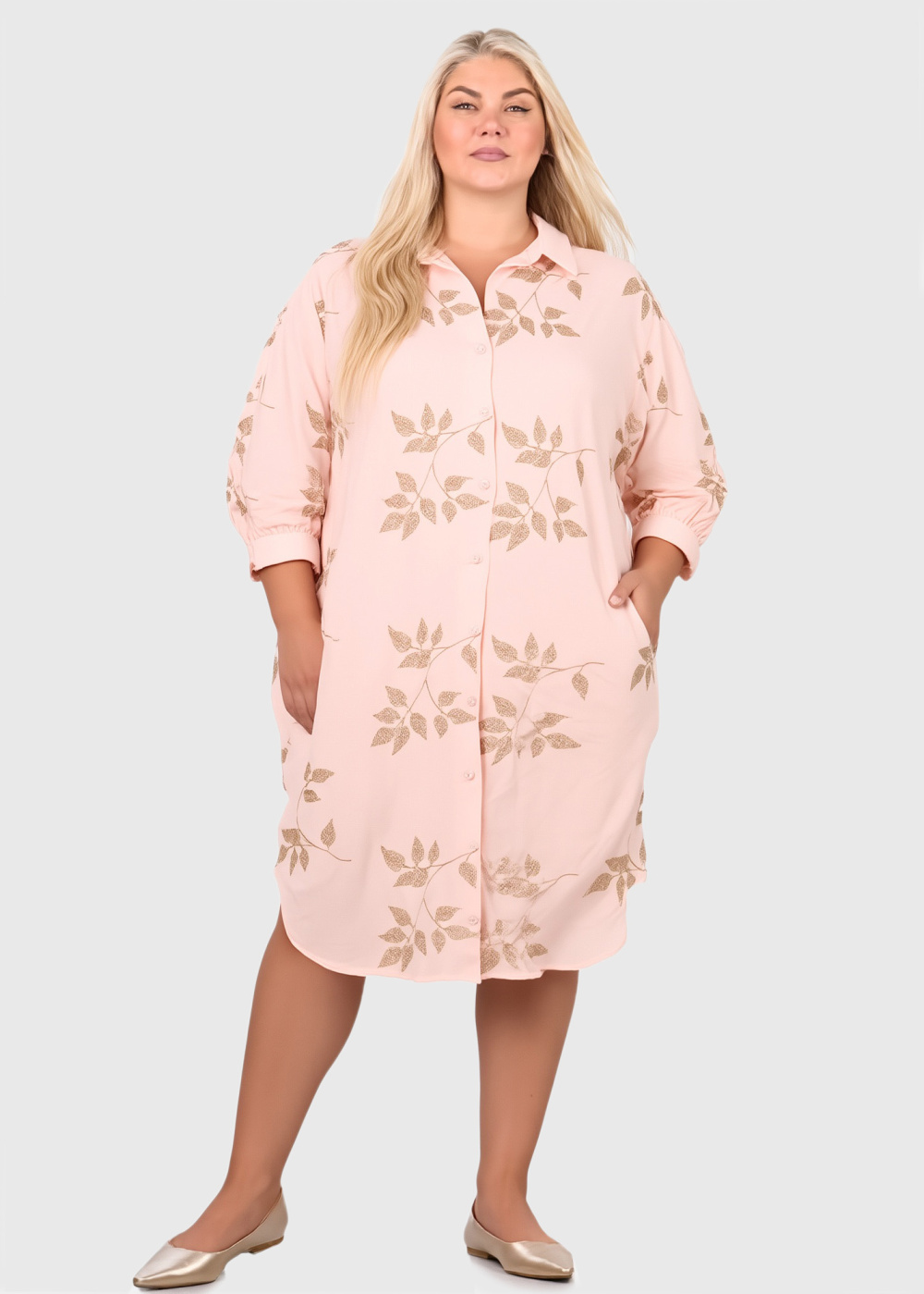 Asmita Lielo izmēru rozā kleita ar pogām