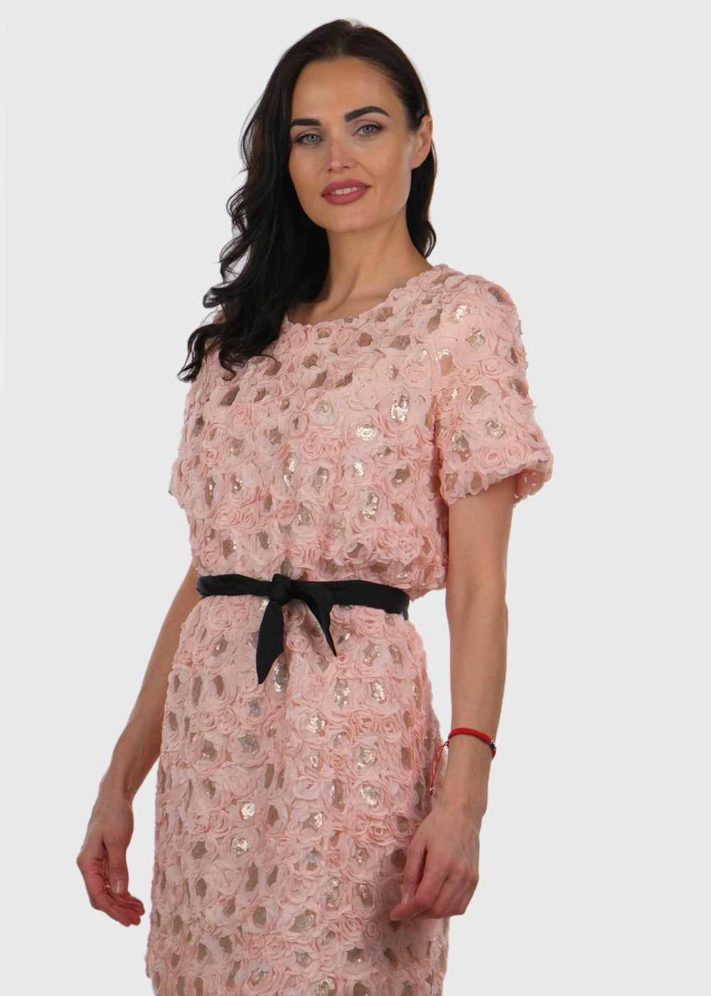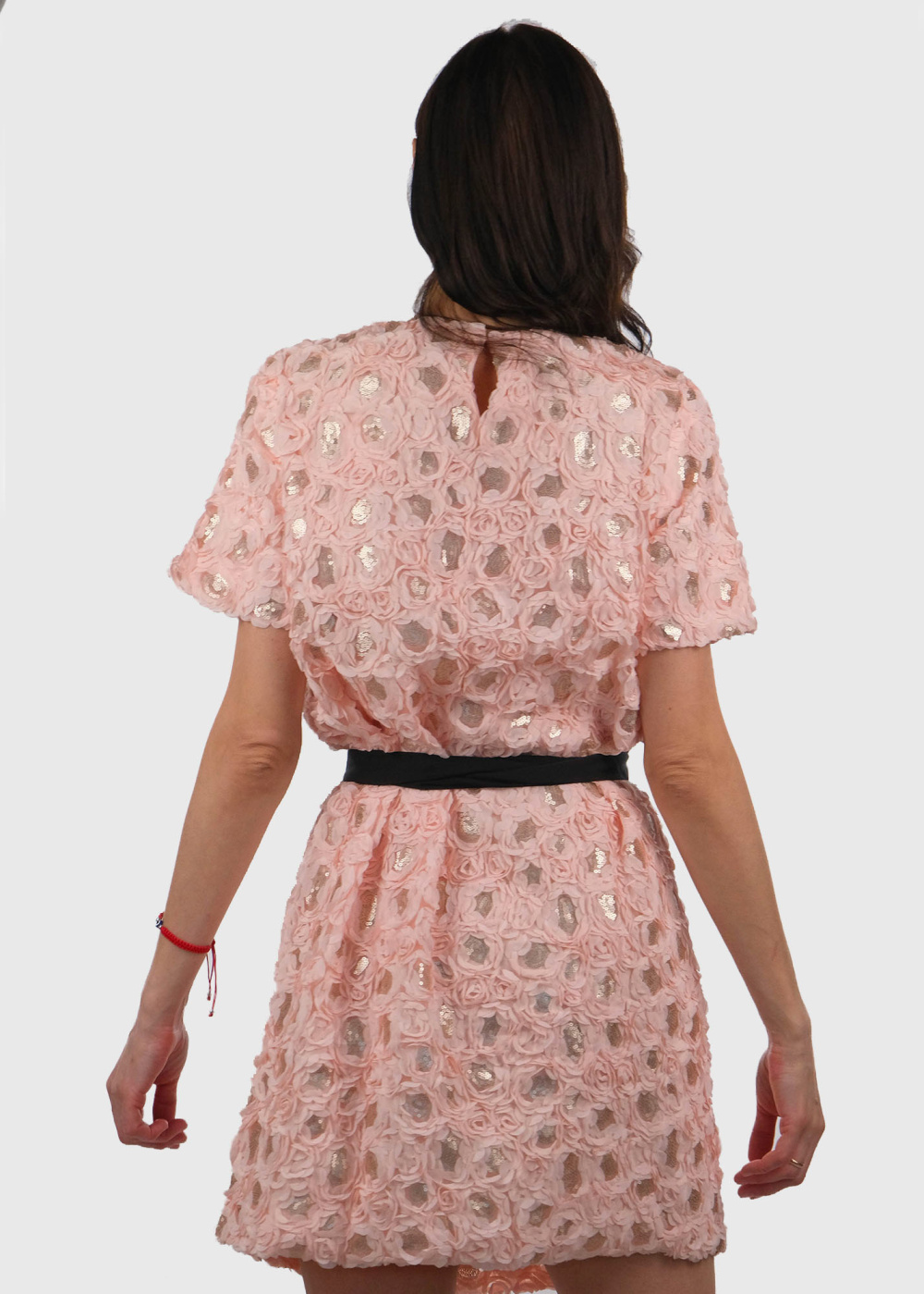 Cemal rozā īsa vakarkleita ar spīguļiem