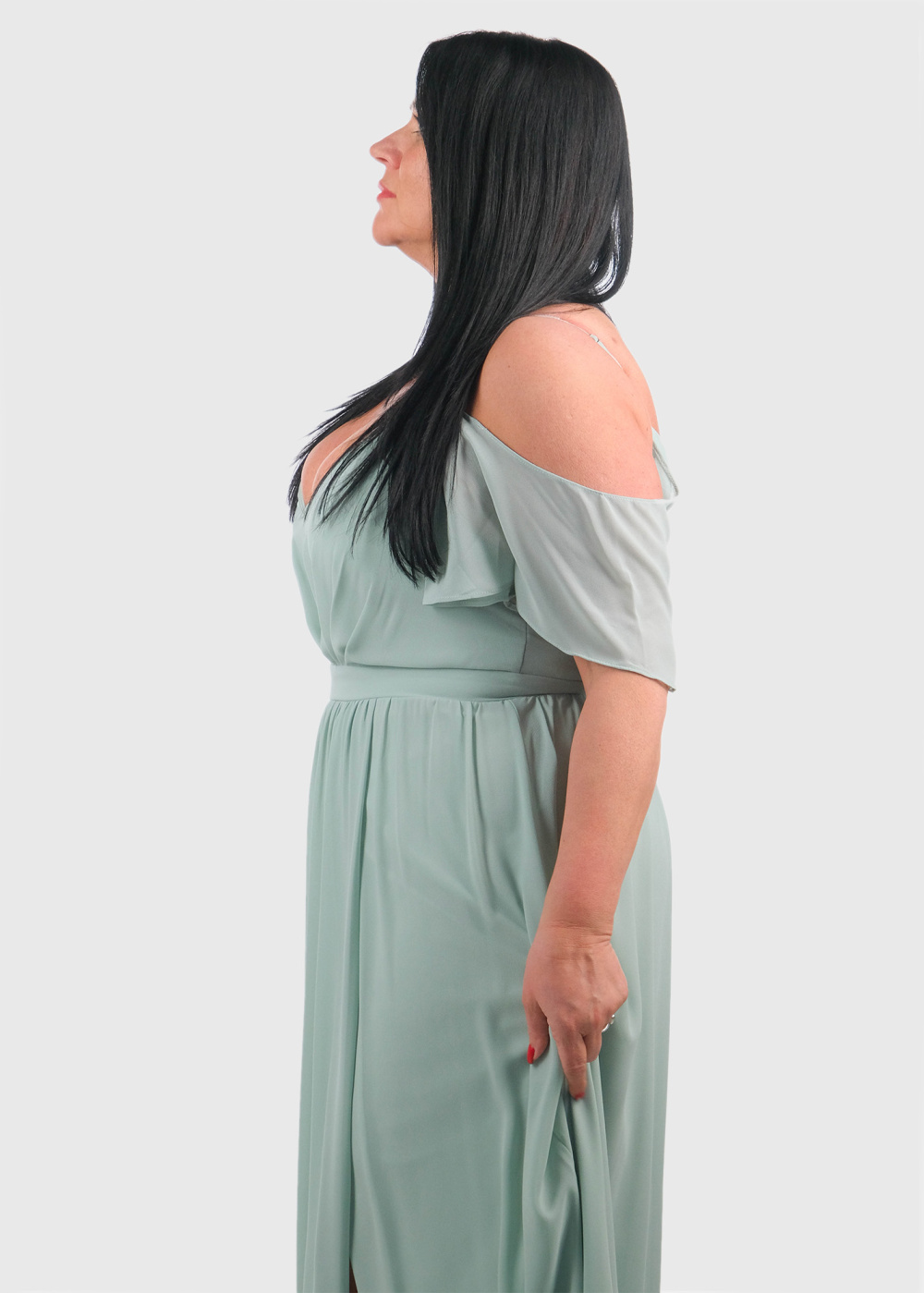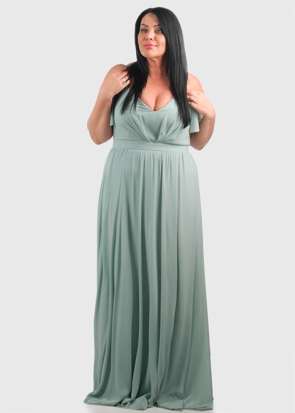 Cherry Lielo izmēru gaiši zaļa gara vakarkleita