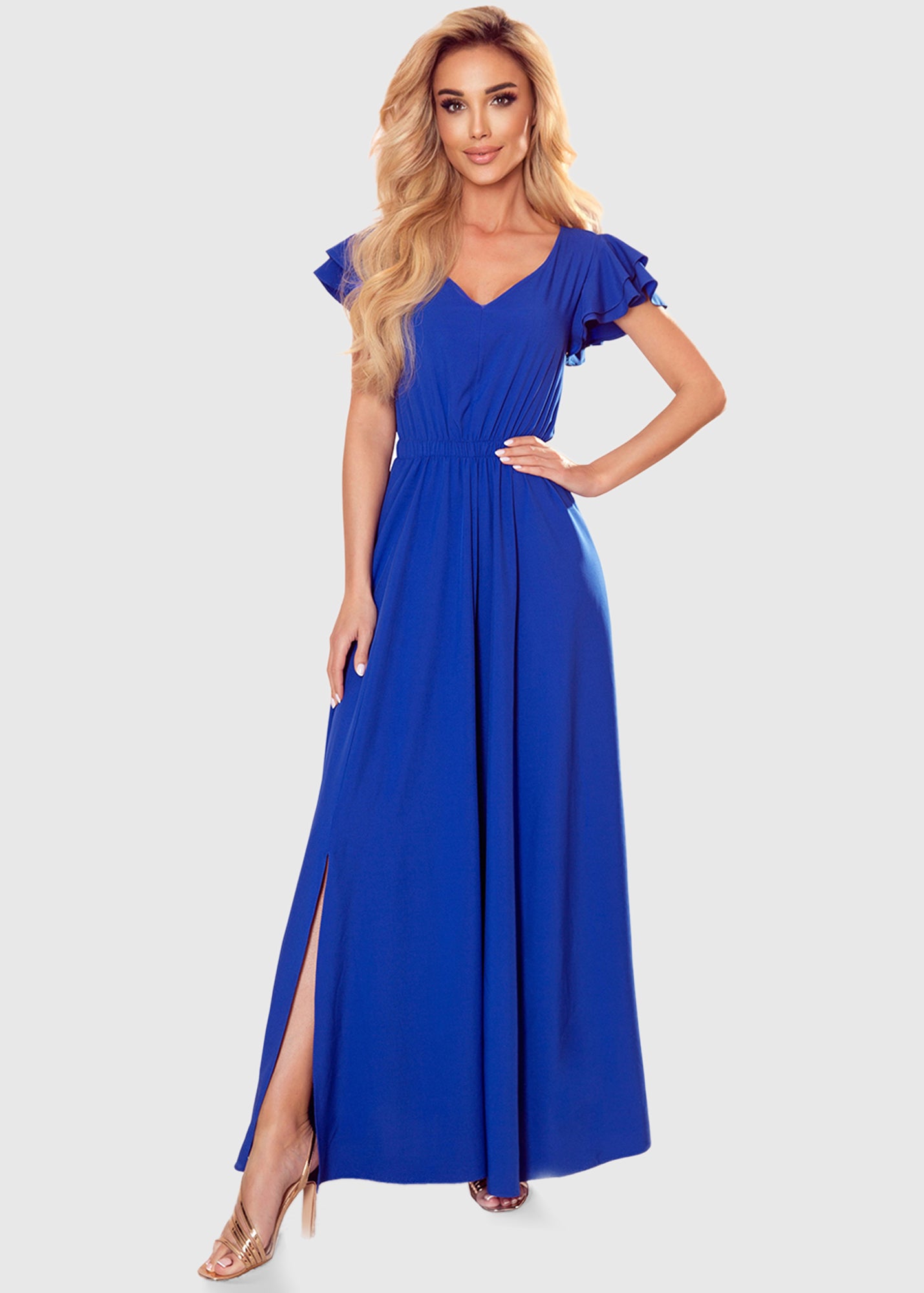 Chiarina zila vakarkleita ar V-veida izgriezumu