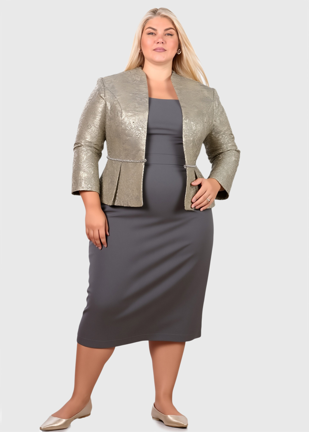 Delphia Lielo izmēru pelēka vakarkleita ar žaketi