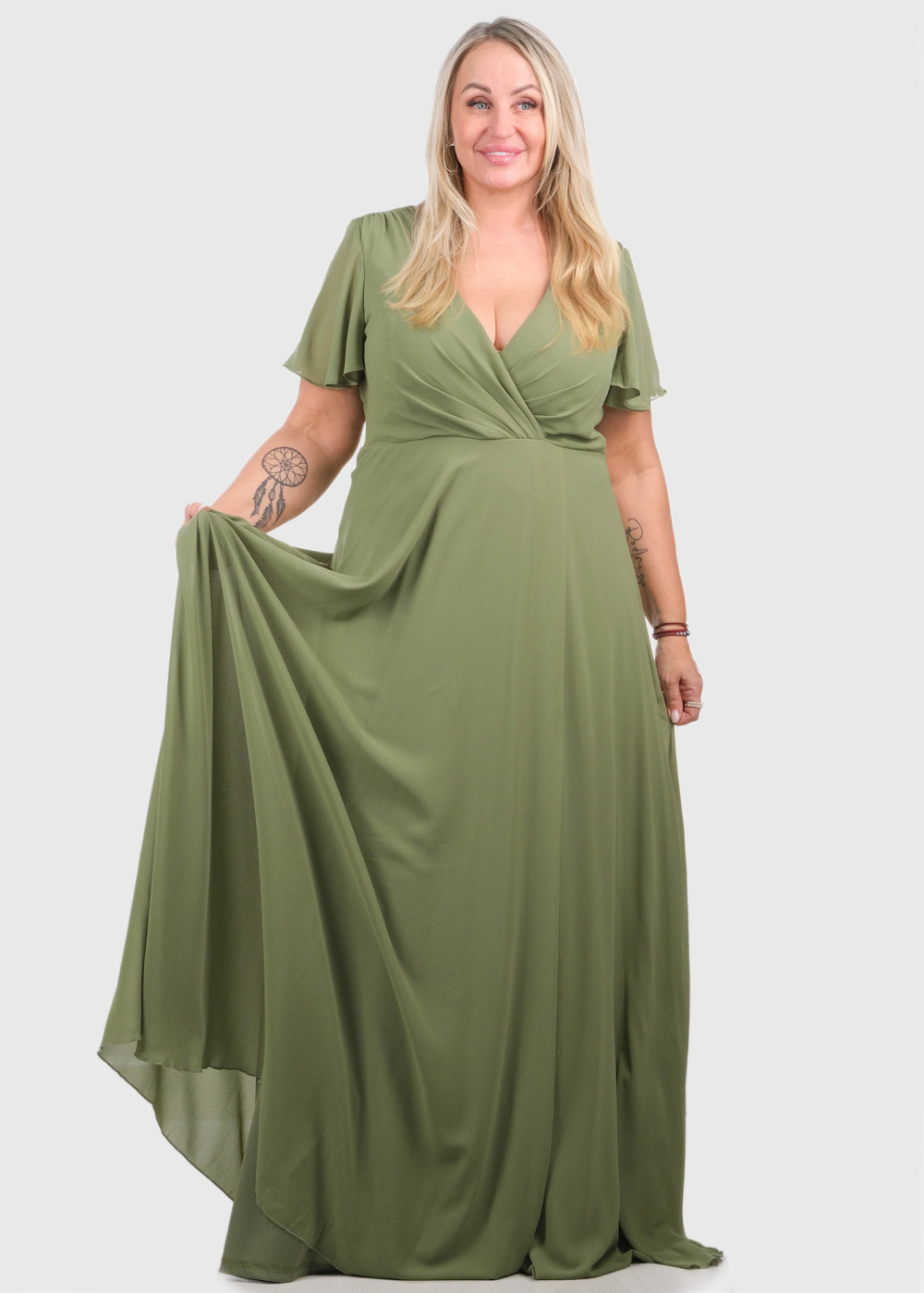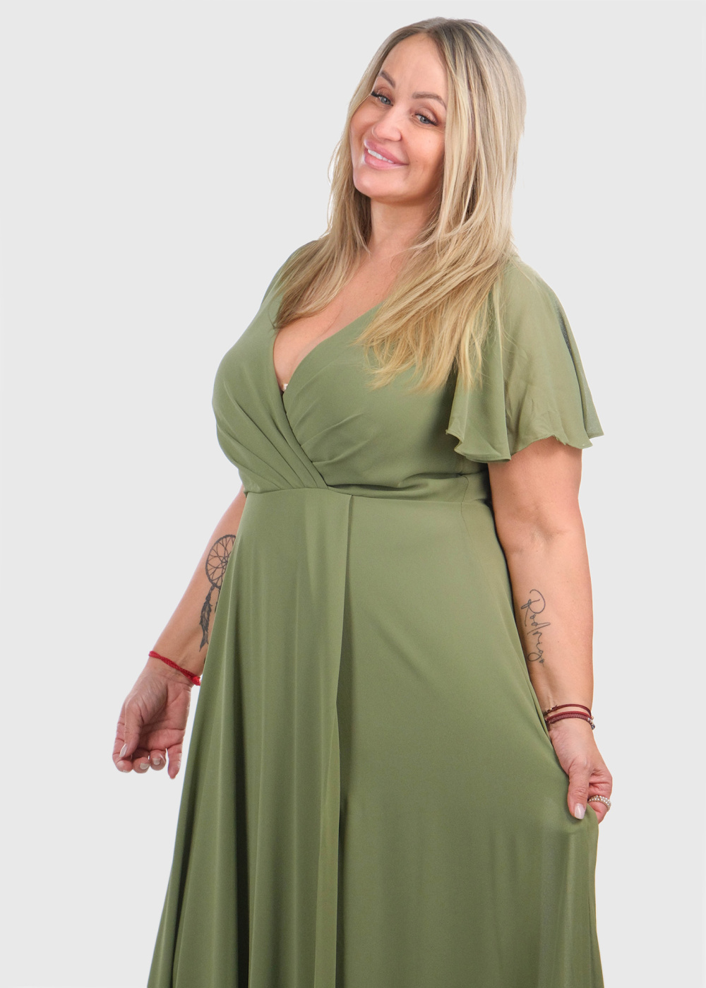 Edina Lielo izmēru zaļa gara vakarkleita ar šķēlumu