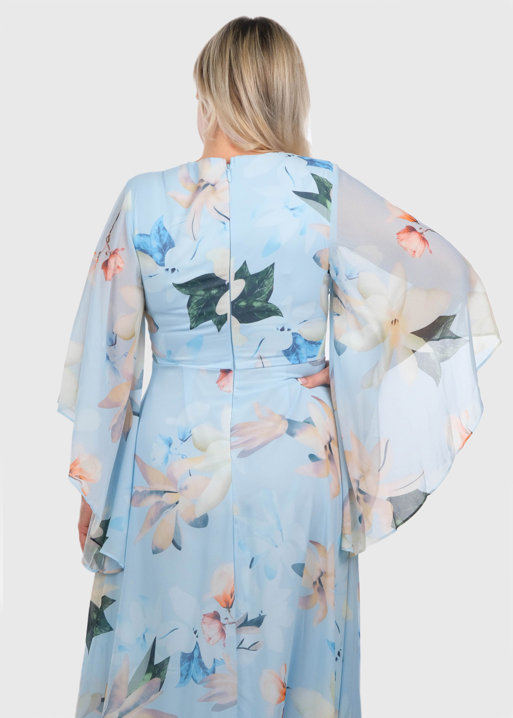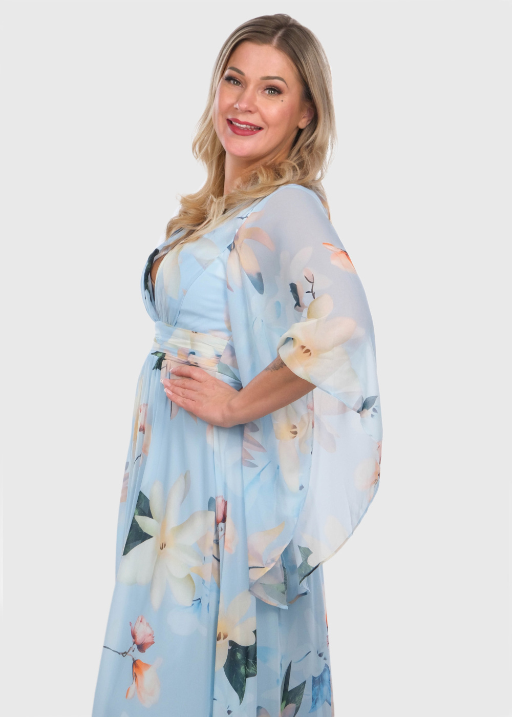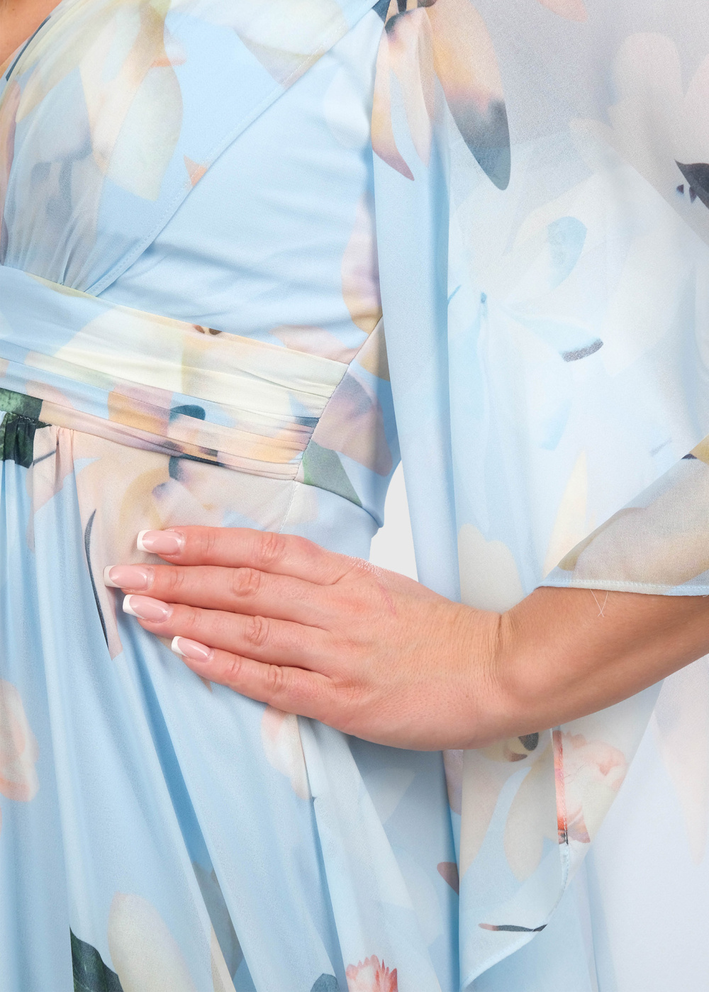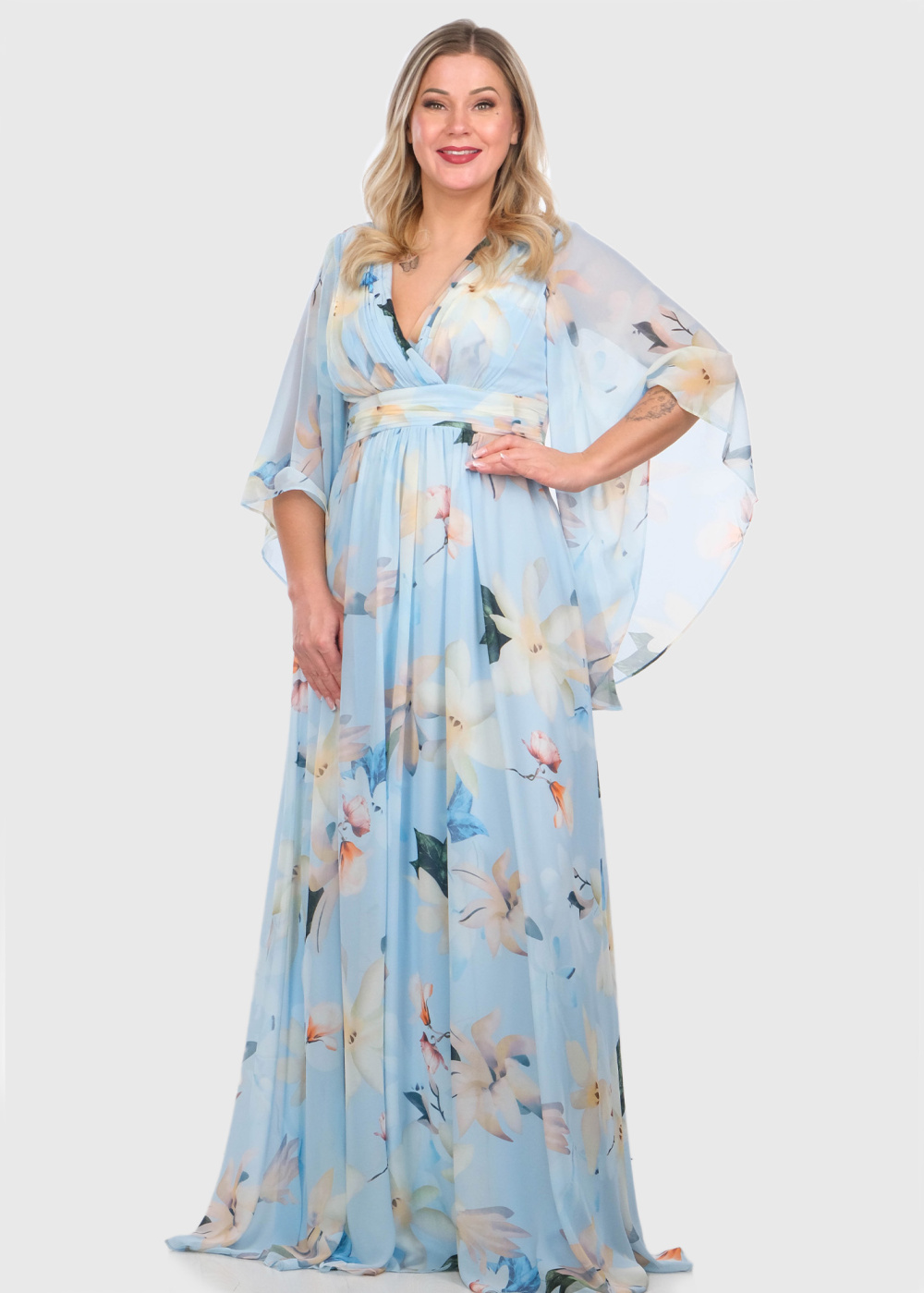 Effie gaiši zila gara vakarkleita ar ziedu rakstu