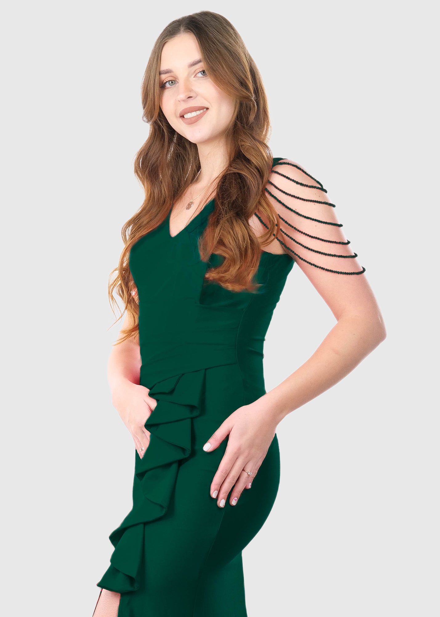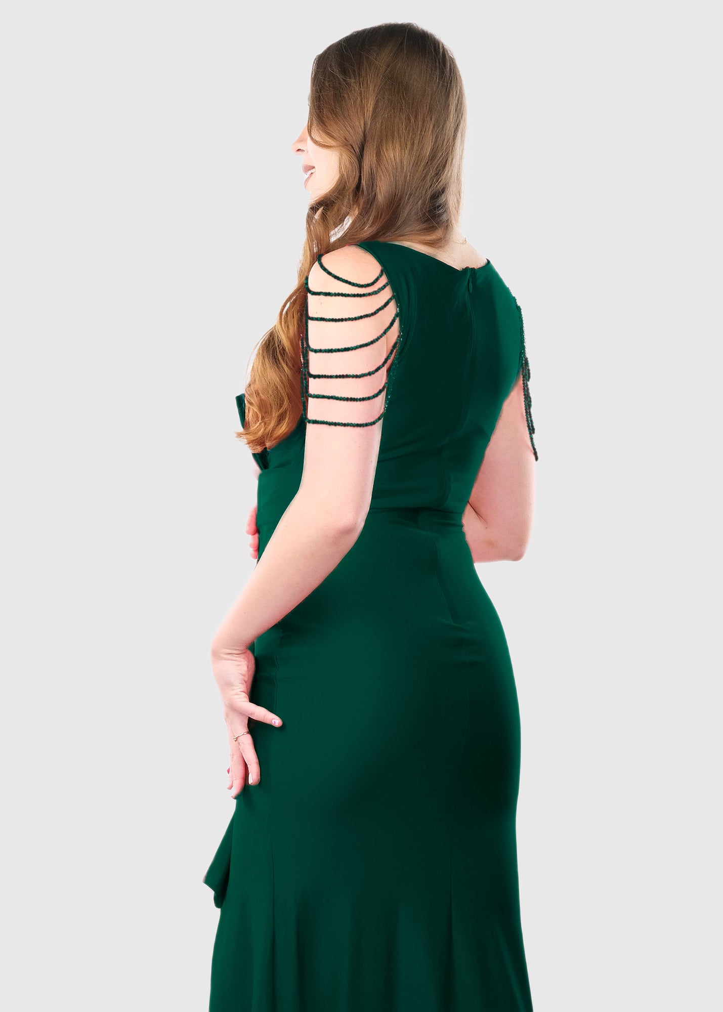 Eufemia zaļa gara vakarkleita ar šķēlumu