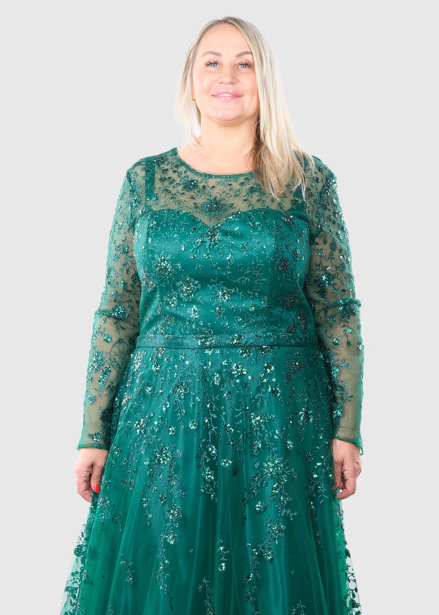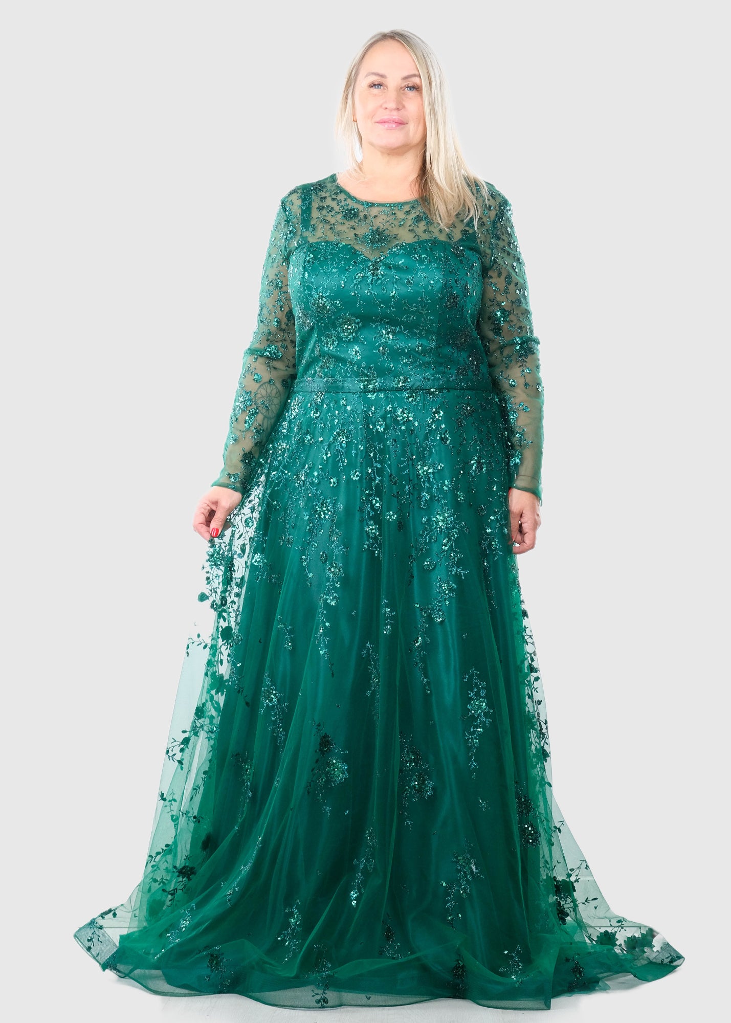Filomena Lielo izmēru zaļa gara vakarkleita