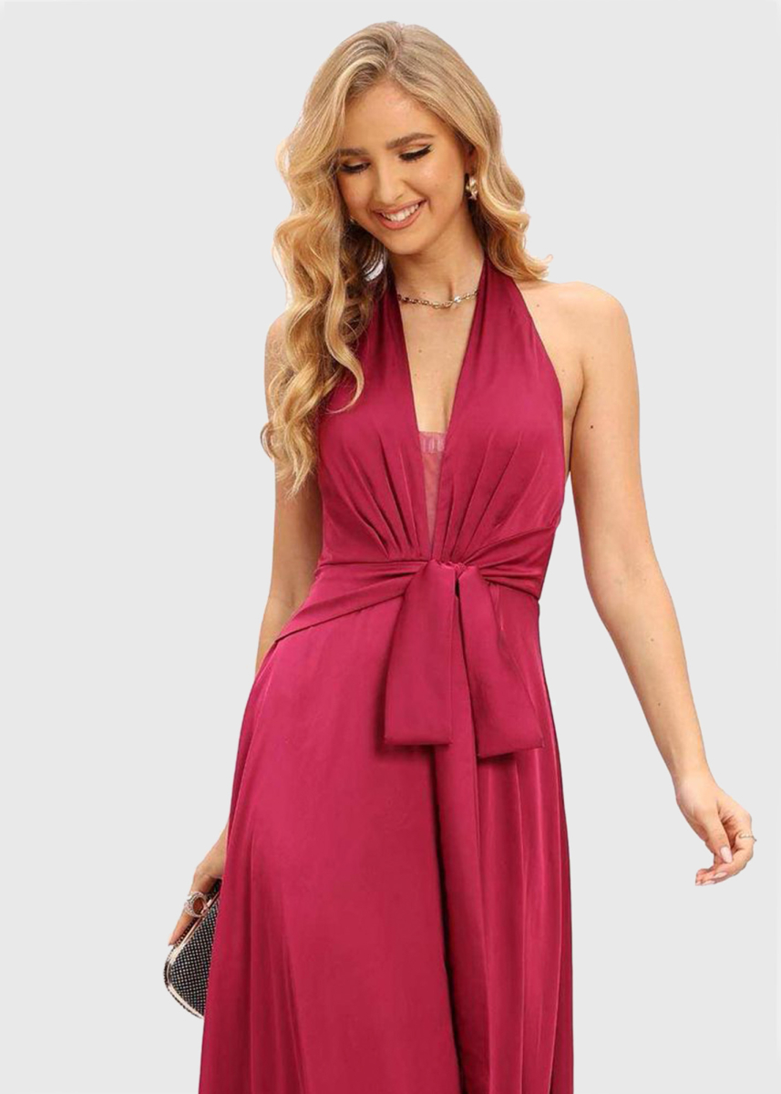 Imana rozā gara vakarkleita ar atvērtu muguru