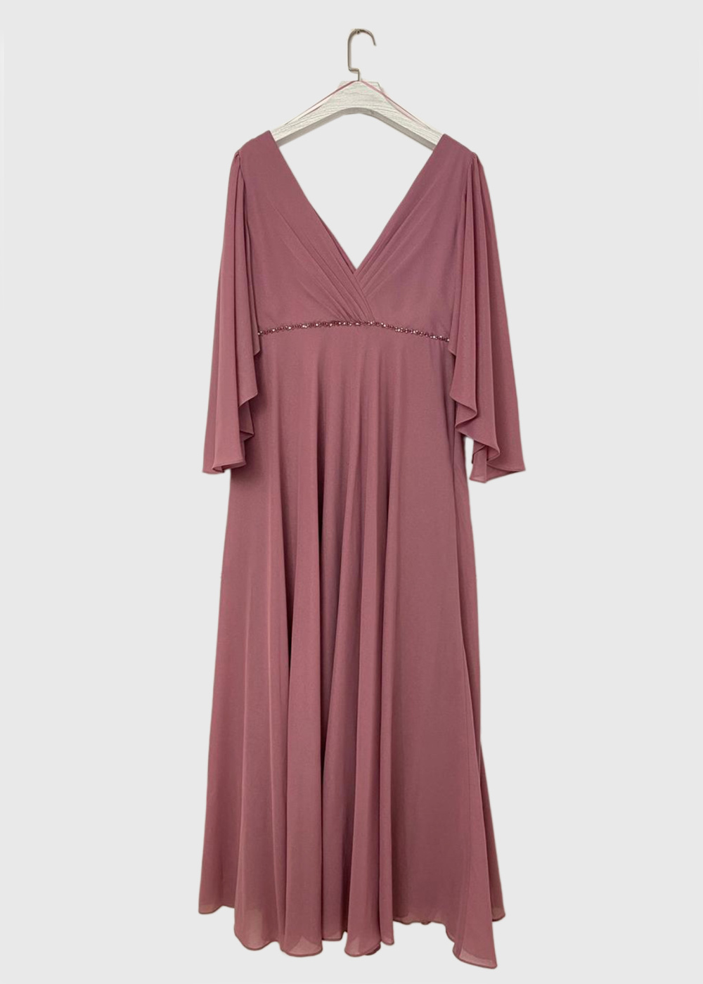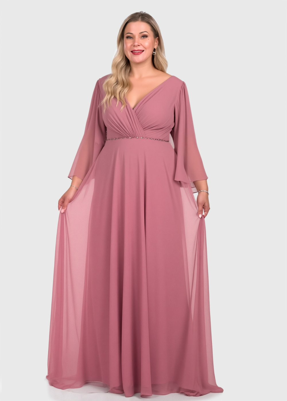 Gilat Lielo izmēru rozā vakarkleita ar garām piedurknēm